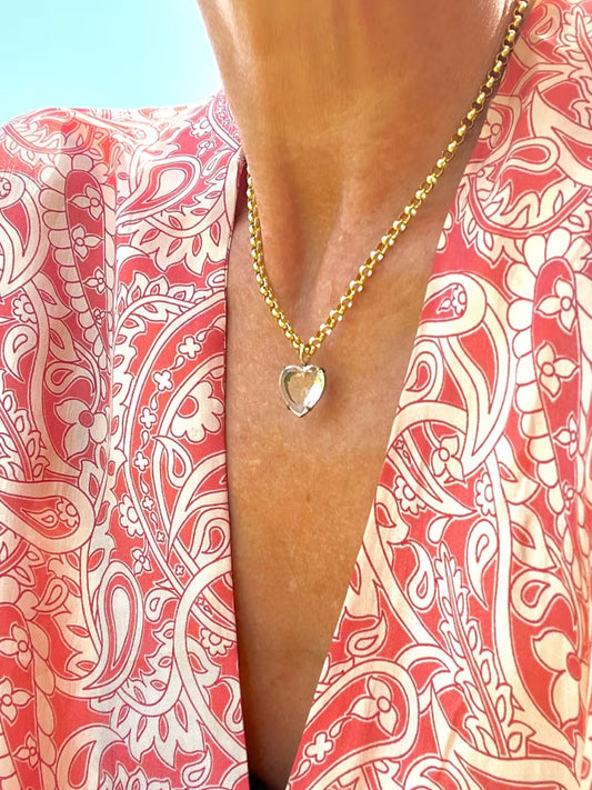 Glass Heart Belcher Necklace