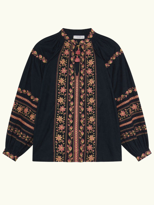 Virginia Embroidered Top - Black