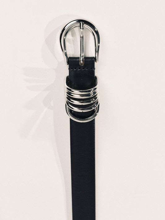 Hollyhock Leather Belt- Black & Silver