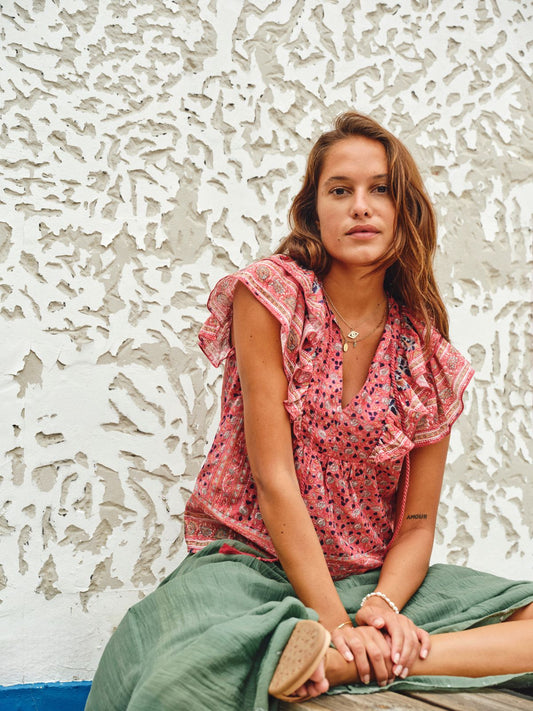 Darla Frill Print Blouse - Rose