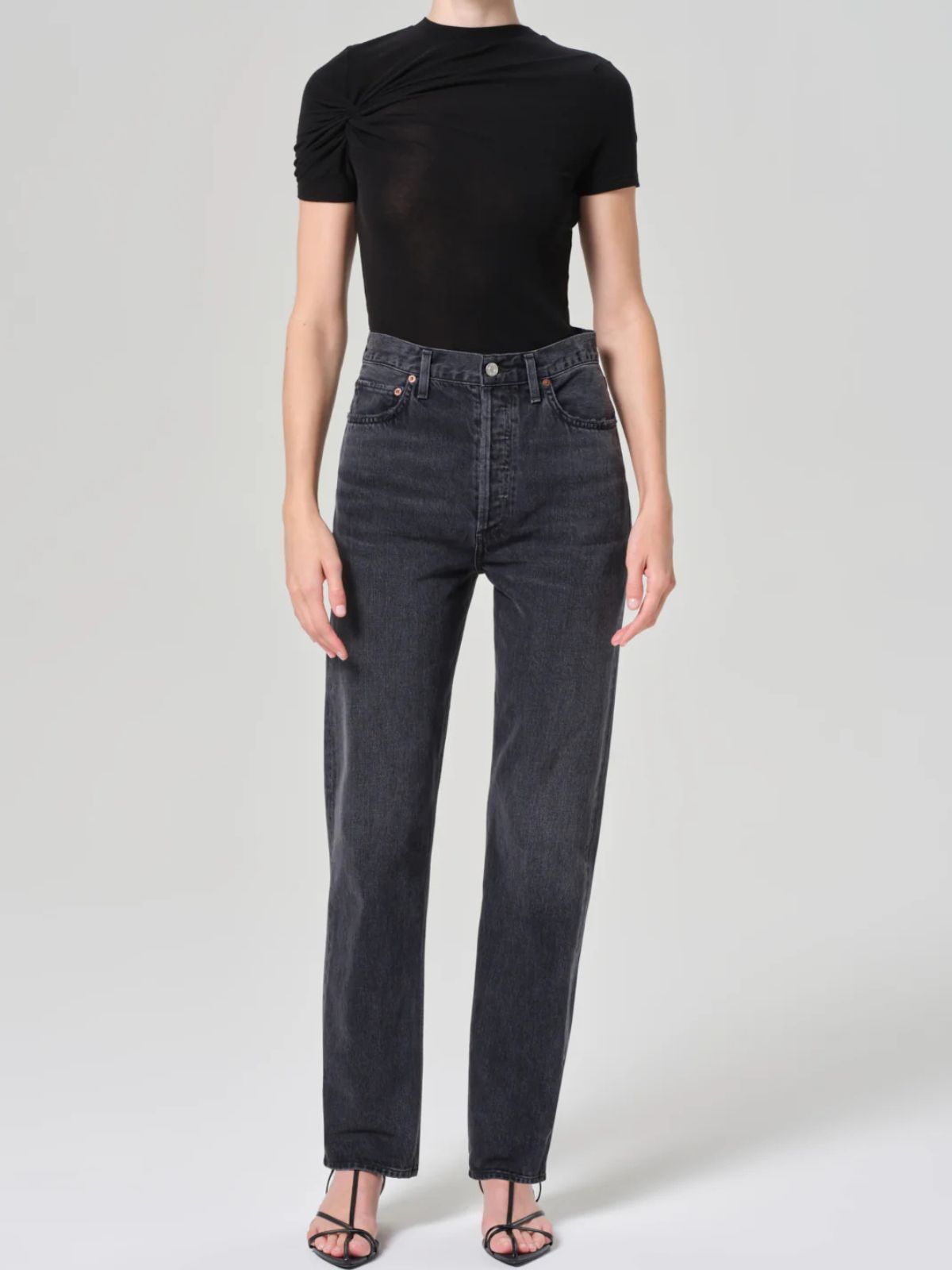 90's Pinch Waist Straight Jean - Faded Black