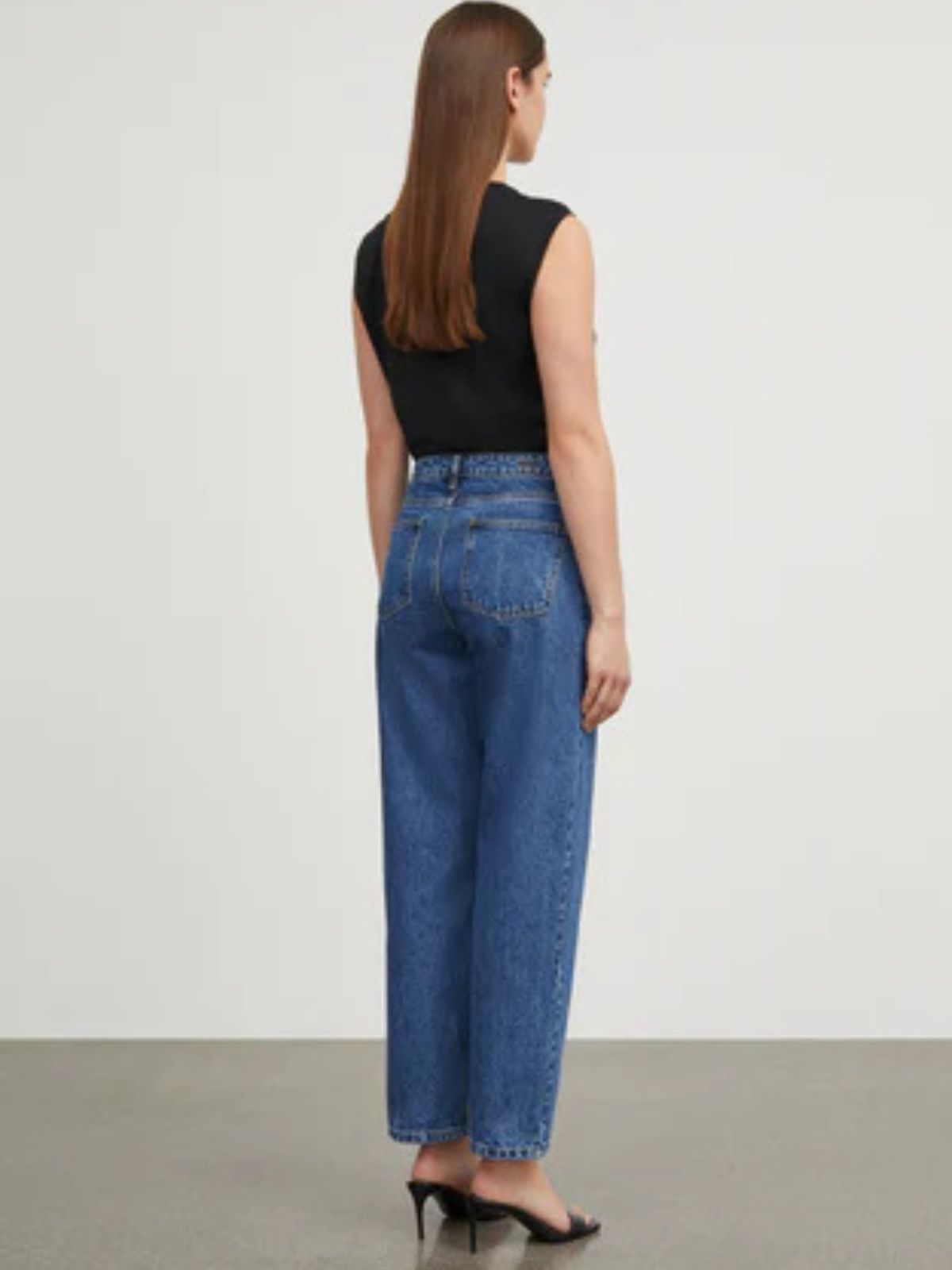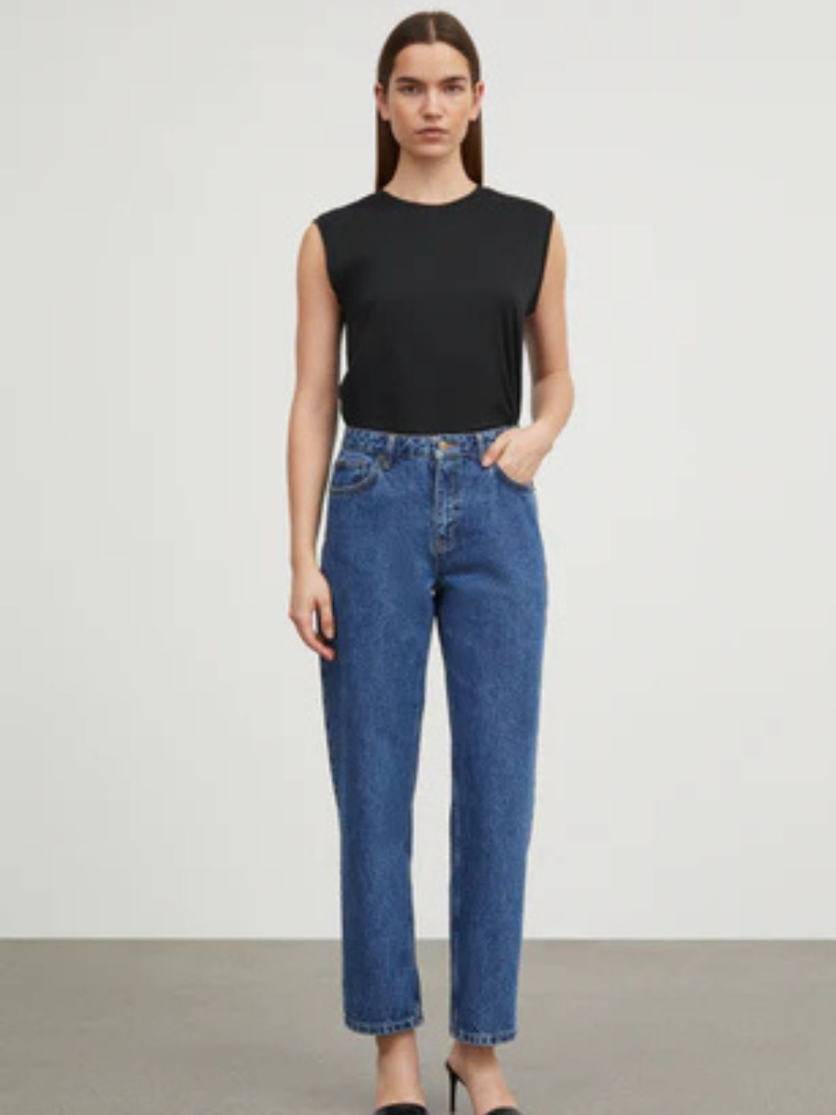 Allison cropped jeans in organic cotton from Skall Studio’s GOTS certified denim line. The straight leg jeans have a medium high waist, a classic five pocket design and belt loops. The length is cropped (see measurements). On the back of the waistband, they feature an embroidered SKALL logo.