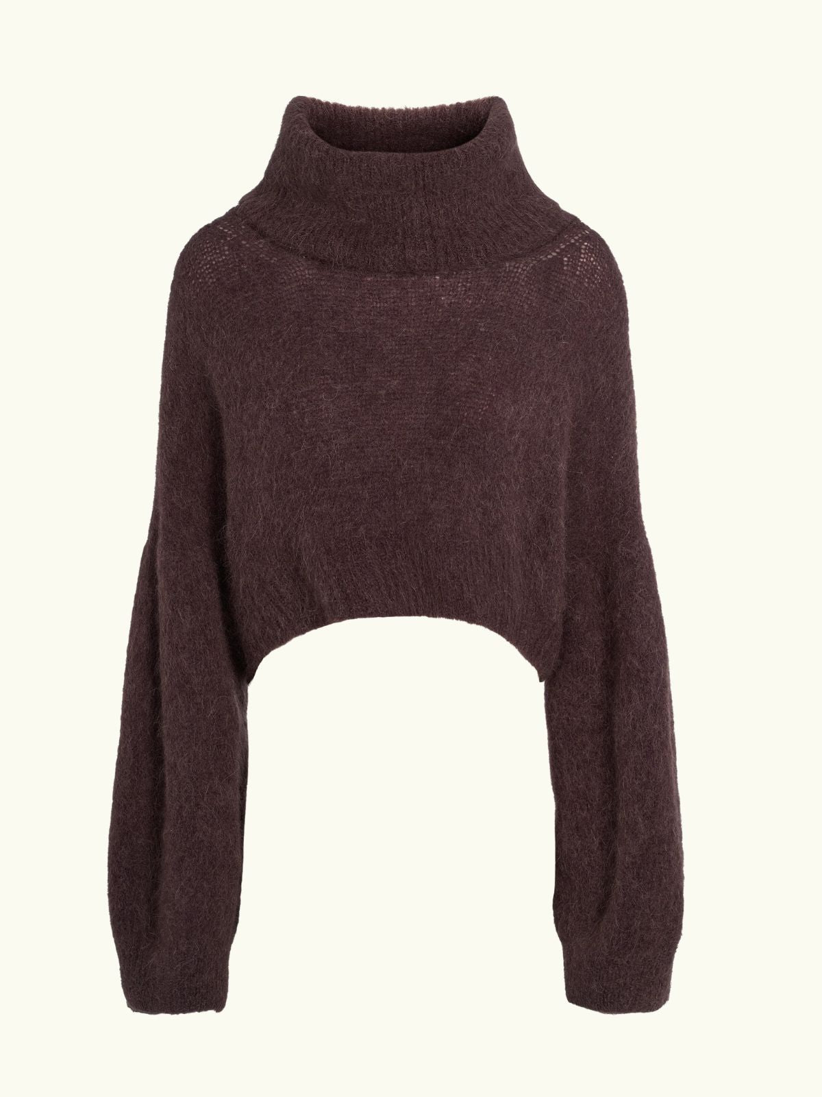 Elevate your wardrobe with the Andrea Roll Neck Cropped Knit in rich chocolate. Crafted from a luxurious alpaca blend, this pullover combines a cozy rollneck and cropped silhouette with subtle ribbed detailing. Lightweight yet warm, it layers effortlessly to add refined comfort and understated elegance to your everyday outfits.