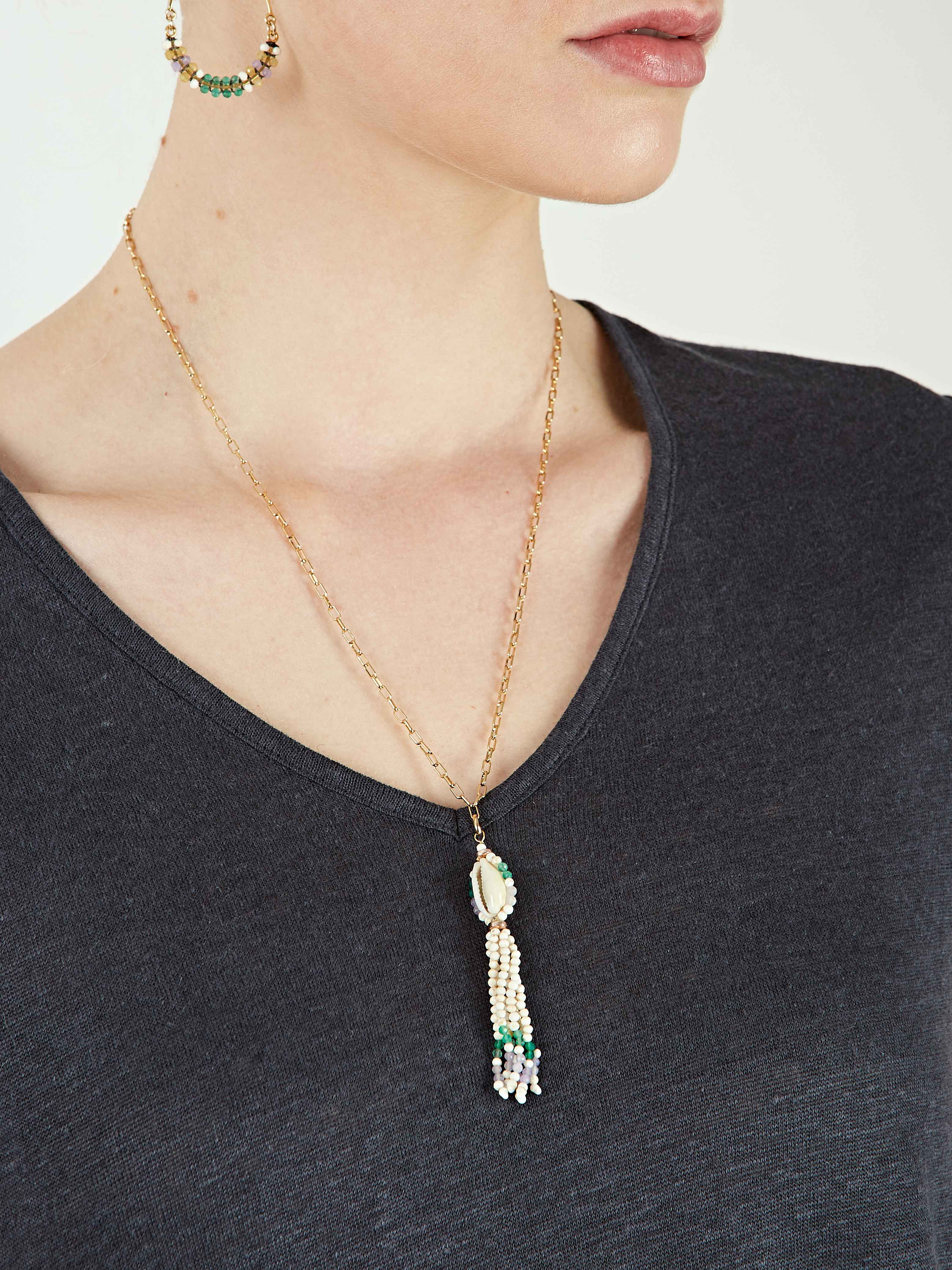 This beaded shell detailled necklace by Isabel Marant a great statement piece for any plain t shirt or blouse. Pair with our range of branded and by Iris earrings to elevate your look.