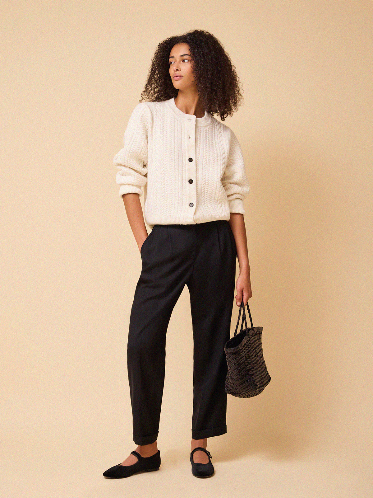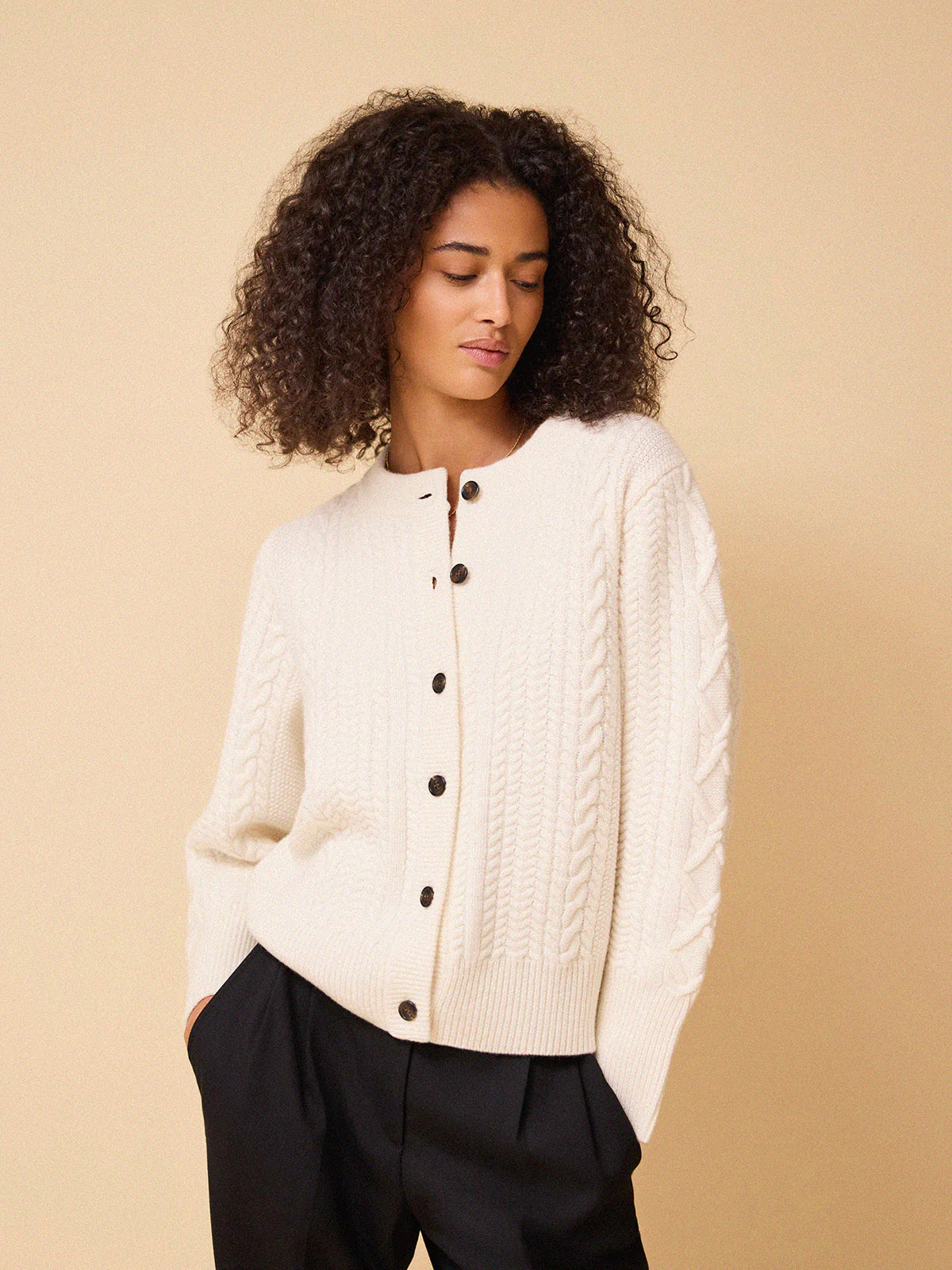 Blair Cable Knit Merino Cardigan - White