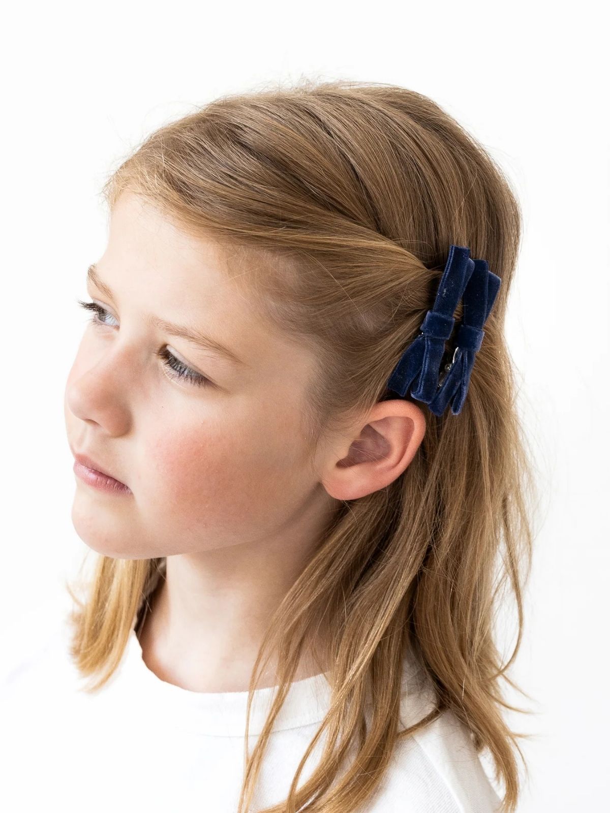 These classic navy bows clips are super versatile and look lovely worn to the side or at the top of a plait or ponytail. Perfect for school, special occasions or dressing up a winter outfit!
