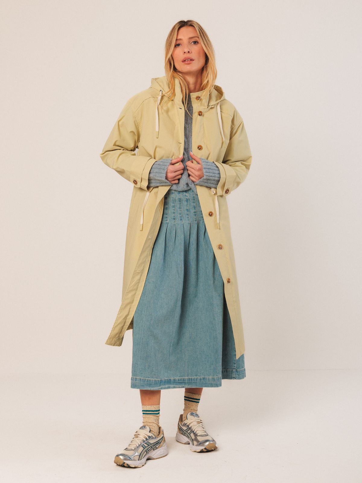 This cable knit jumper, crafted with soft alpaca blend yarn, offers a chic combination of comfort and style. Its cropped, loose fit lends a modern silhouette, while the delicate pale blue hue adds a refined touch to your wardrobe. A perfect piece to elevate casual ensembles with understated elegance.