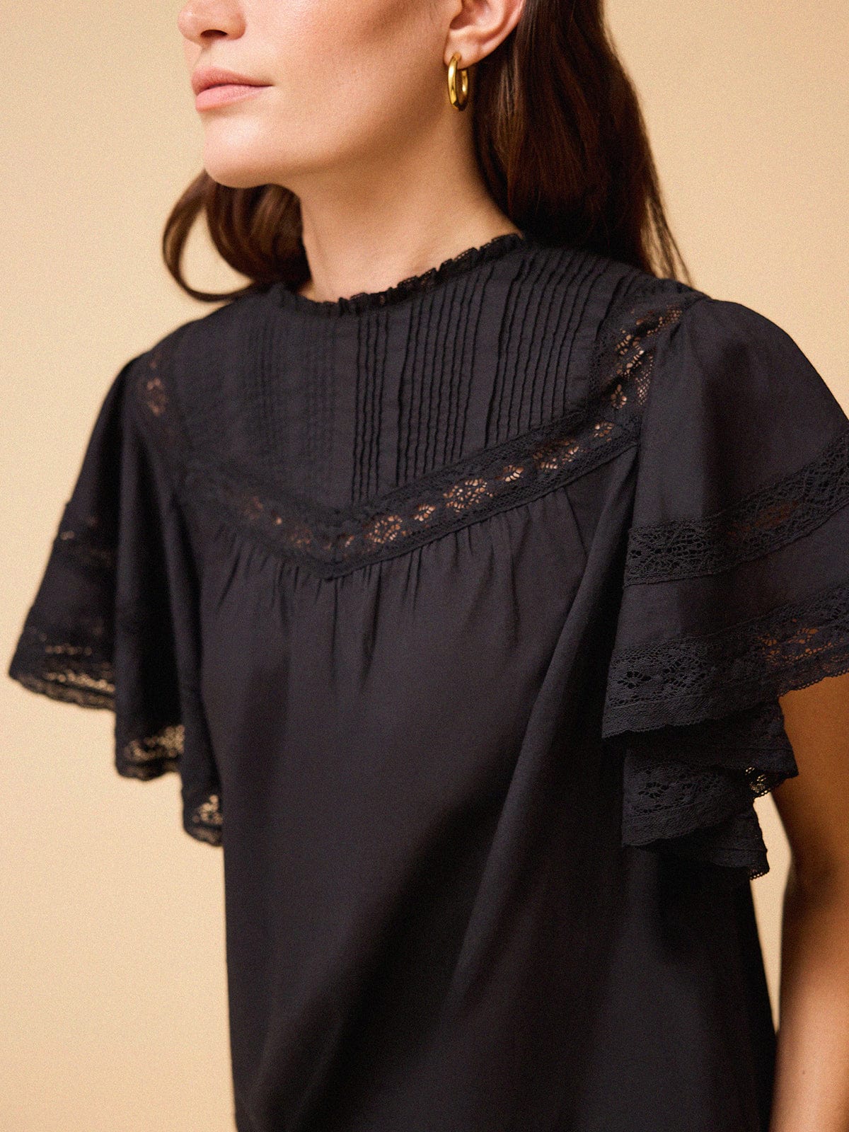 This Capri Lace Insert Top has been updated for SS24 in a gorgeous light blue and black. It features a high neckline and is crafted with beautiful lace, making it a fitting choice paired with jeans or a breezy summer skirt.