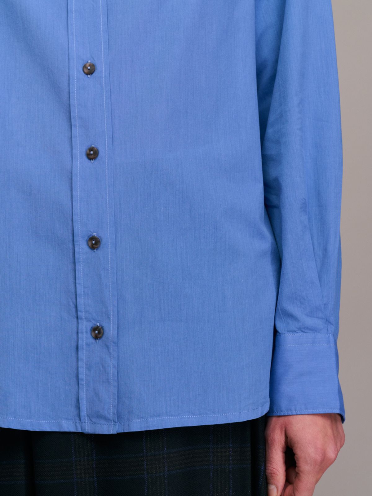 The Chaba Shirt in Blue is a refined silk piece featuring a straight fit and classic design. Crafted for elegance and comfort, this shirt offers a polished silhouette that elevates your wardrobe with effortless sophistication.