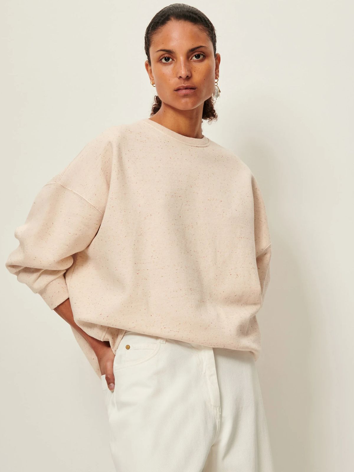 Elevate your casual wardrobe with the Chebbi Oversize Sweatshirt, crafted from soft mottled fleece for a relaxed yet refined look. This sweatshirt offers exceptional comfort and style, perfect for layering or wearing on its own. Certified to the OEKO-TEX® STANDARD 100 (certificate no. CQ 1235-1 by IFTH), it ensures safety and quality by being free from harmful substances. Experience effortless sophistication in a piece designed for both comfort and peace of mind.