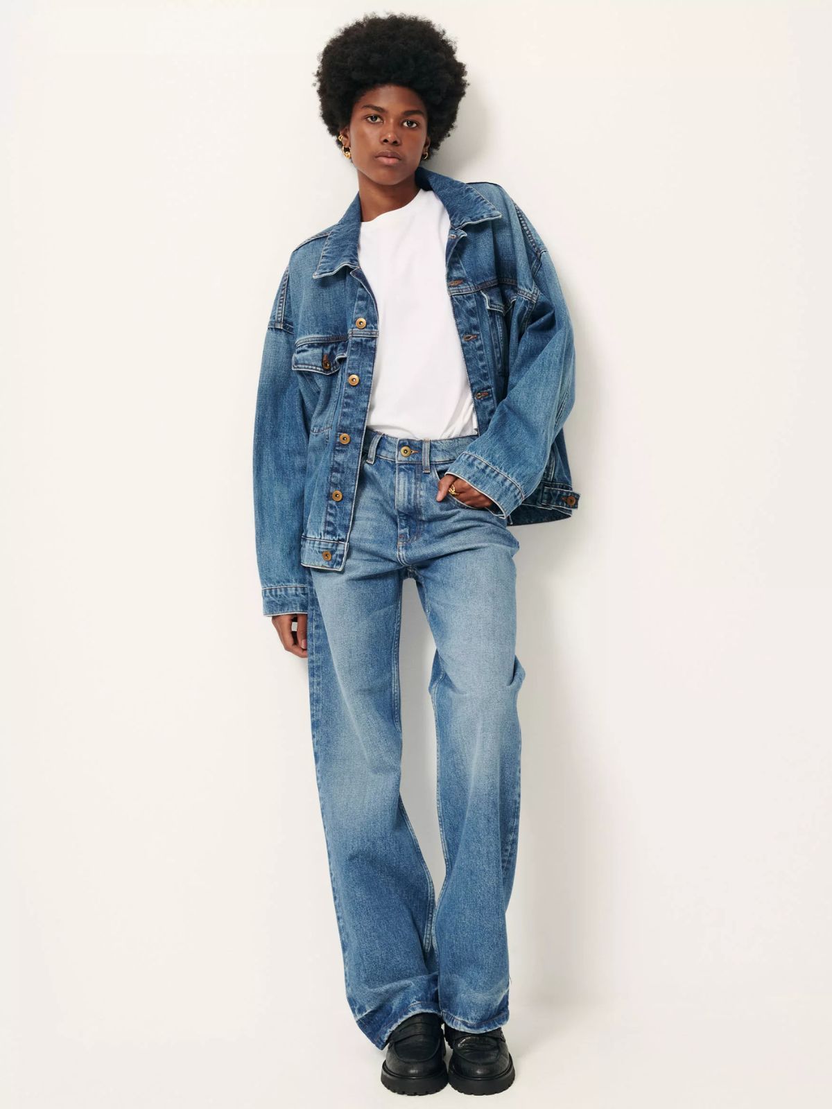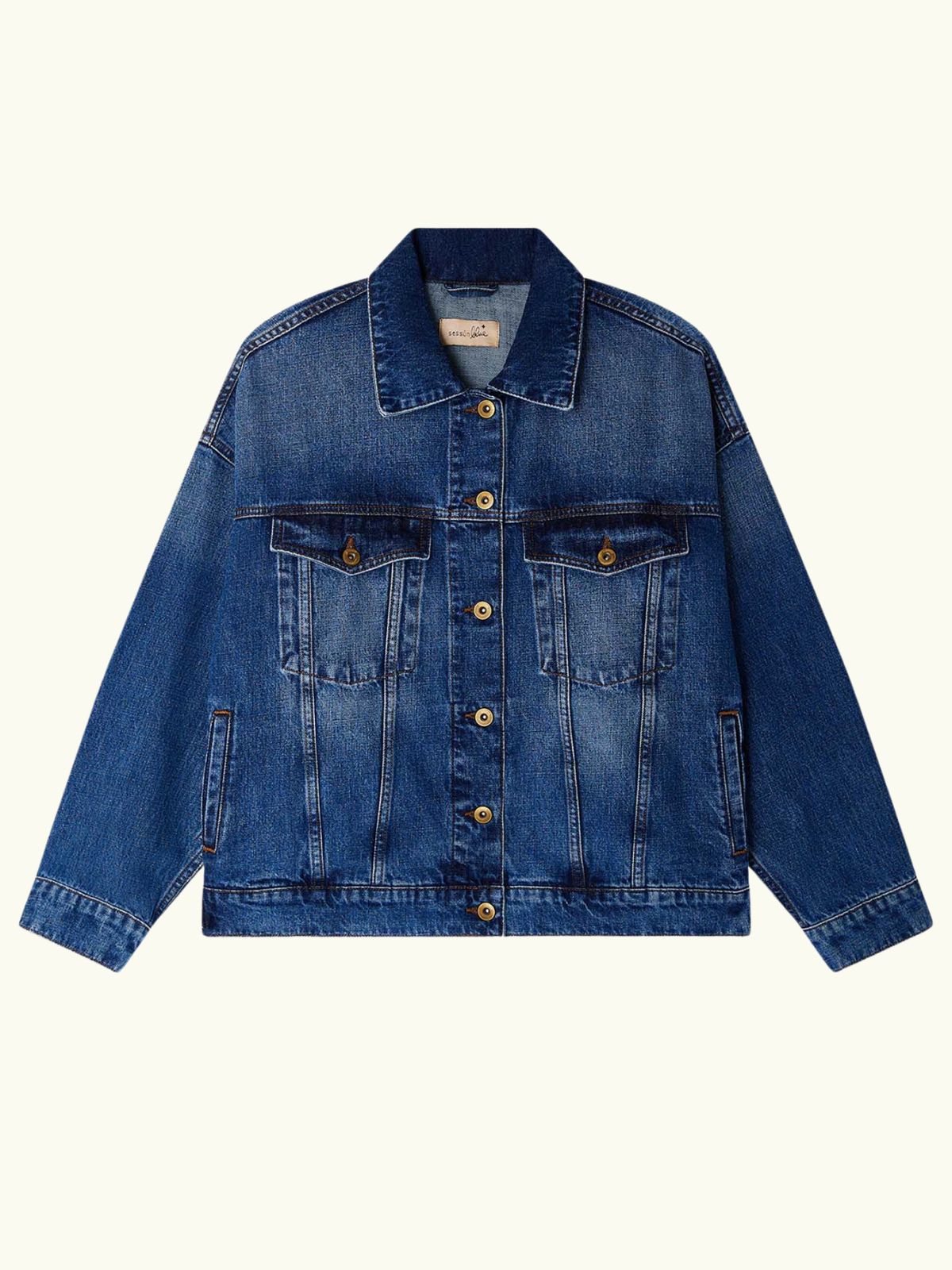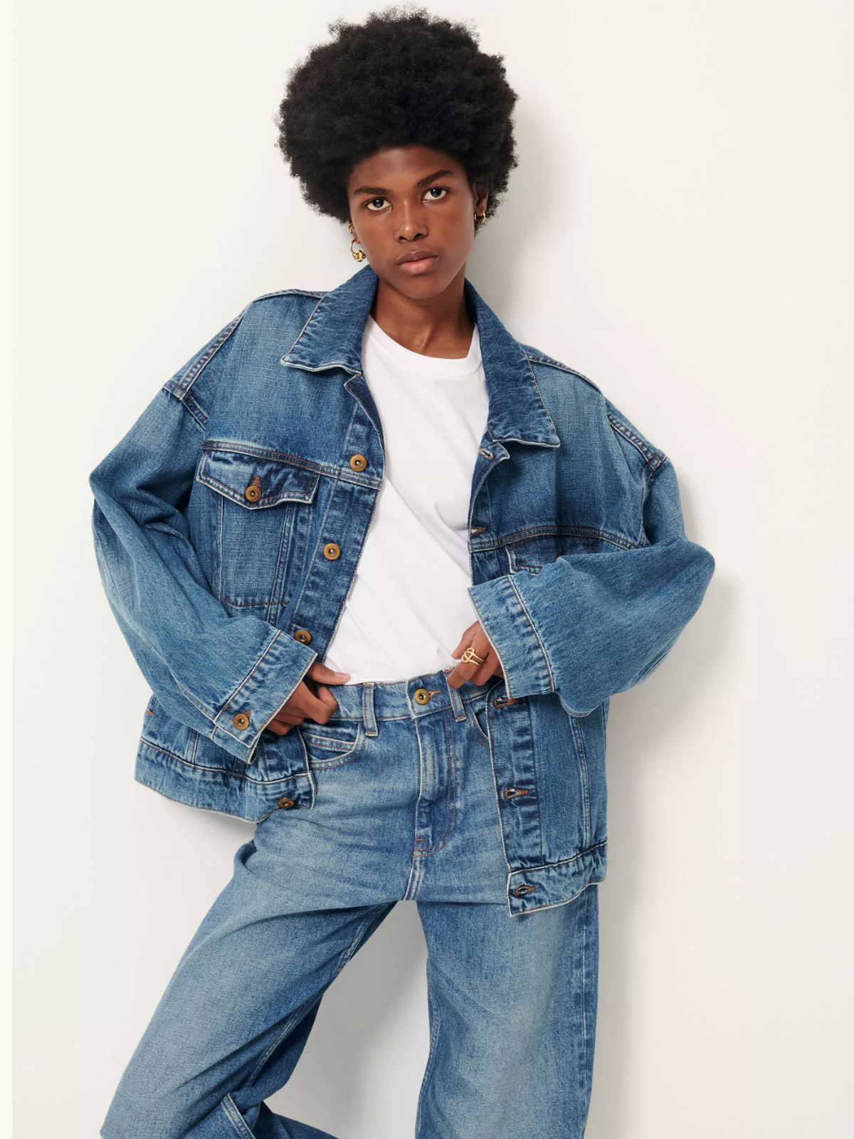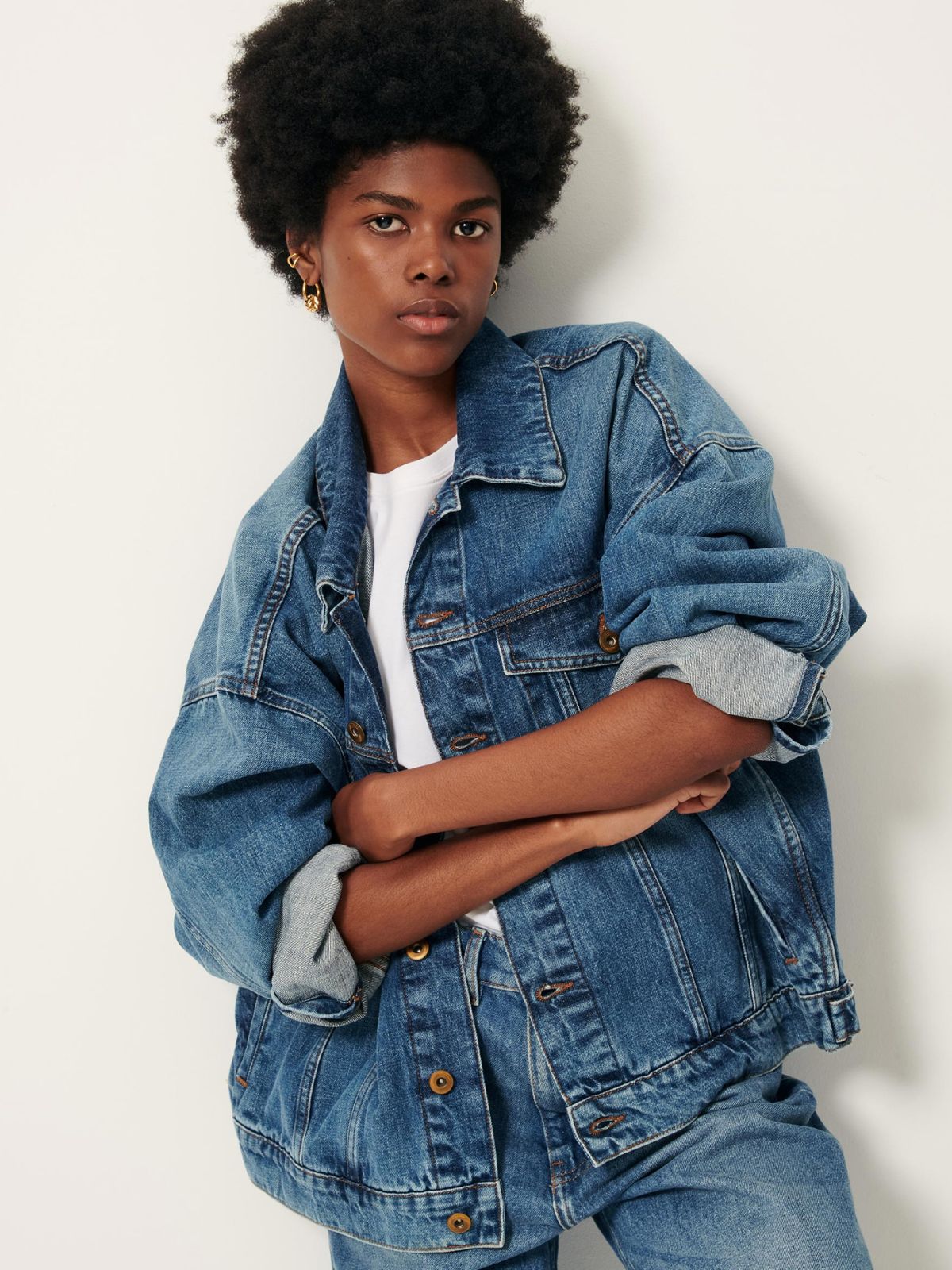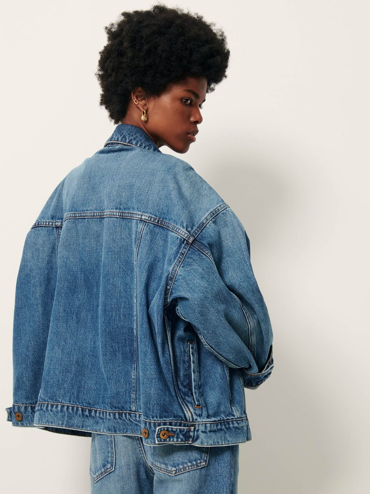 Wide jacket in stonewashed denim.