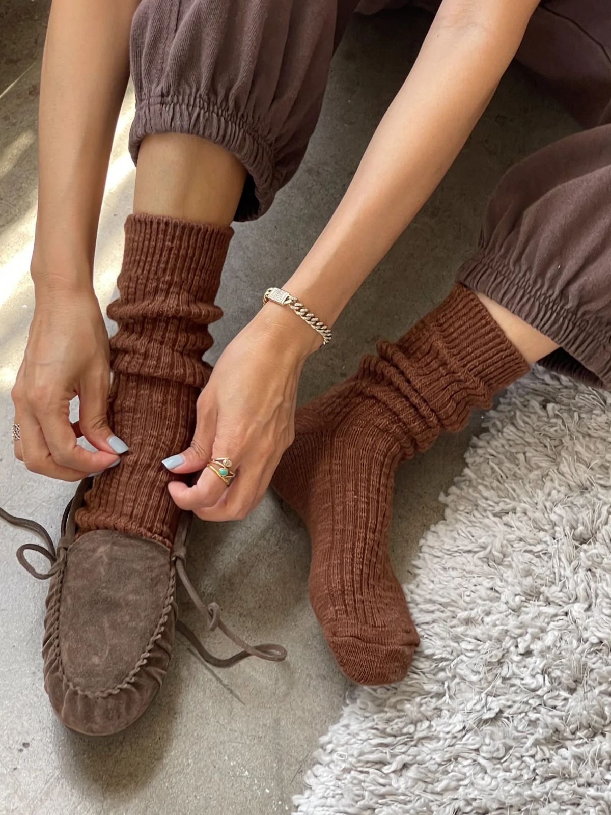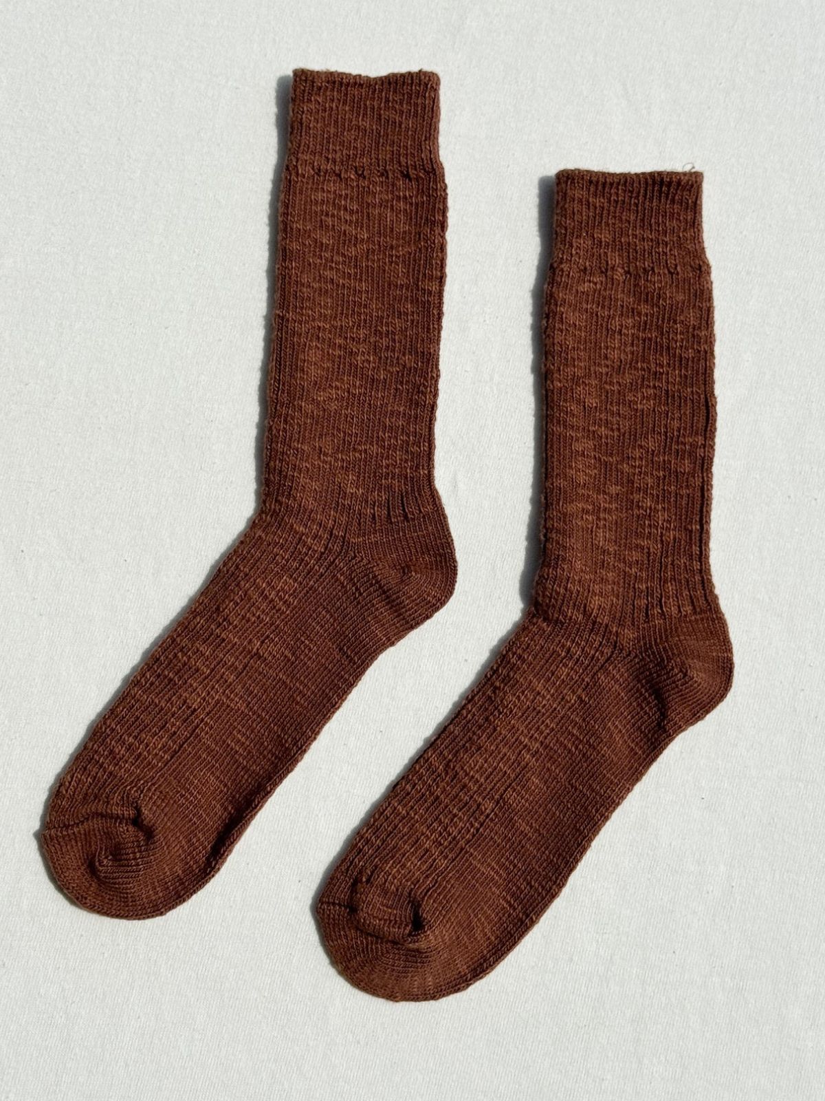 We were dreaming of a chunky, beautiful knit sock that felt effortless and romantically rustic. The rich texture, faded color palette, thick ribbing and organic scrunching of Cottage Socks invites feelings of wabi sabi and slowing living. These natural, cotton blend socks loves to be worn with vintage florals and tonal layers of luxurious natural fibers.
