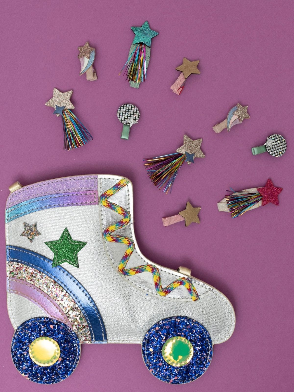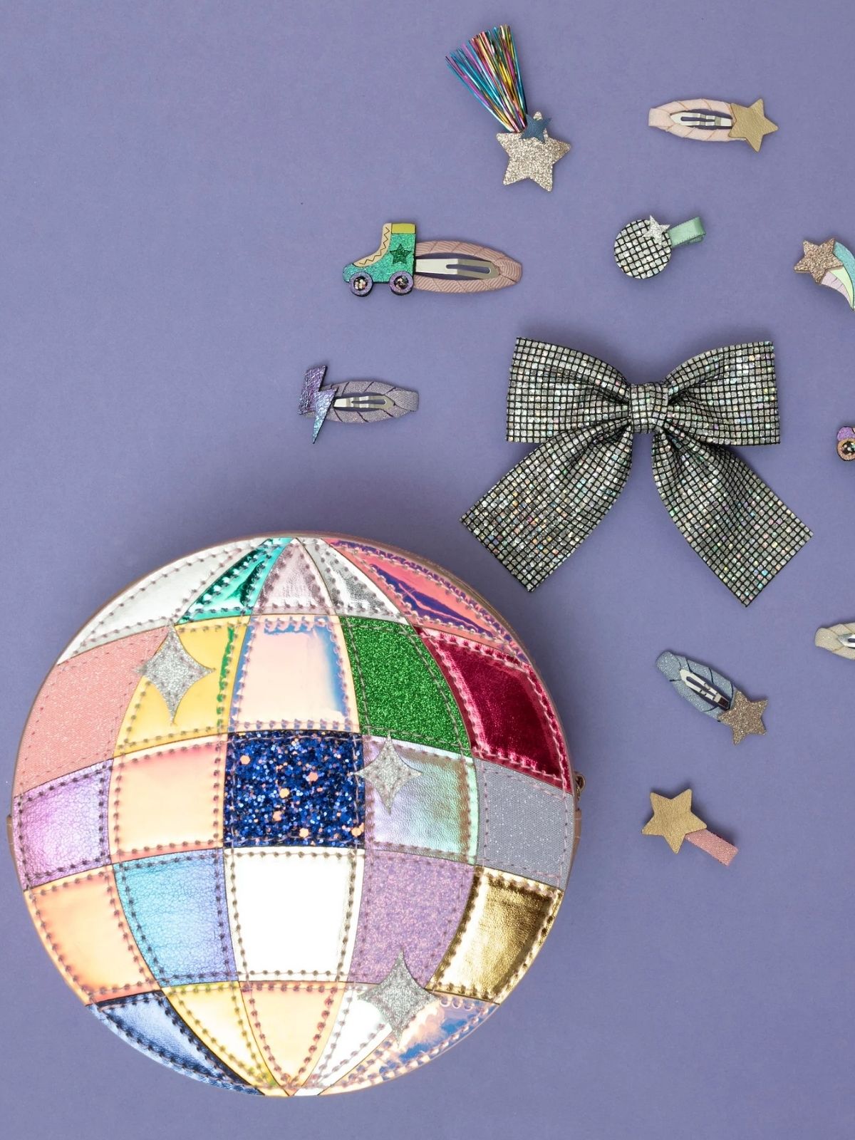 Dinky little disco fans will love to decorate their chosen 'do with this fab pack of mini clips! Disco balls, retro rollerboots, and sparkly stars - all the stuff the cool kids will go crazy for!