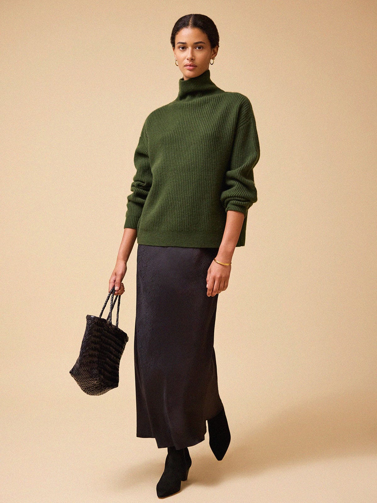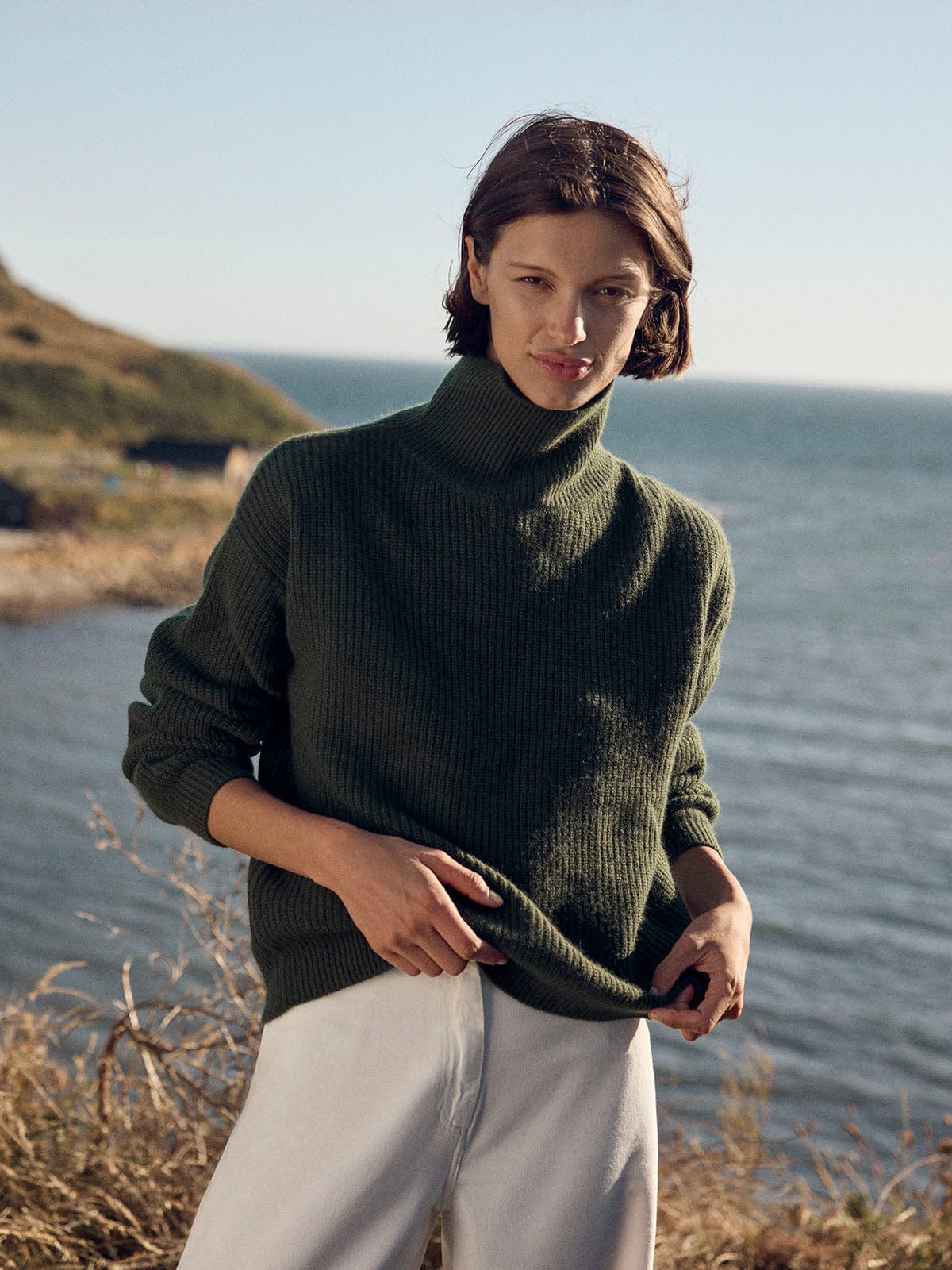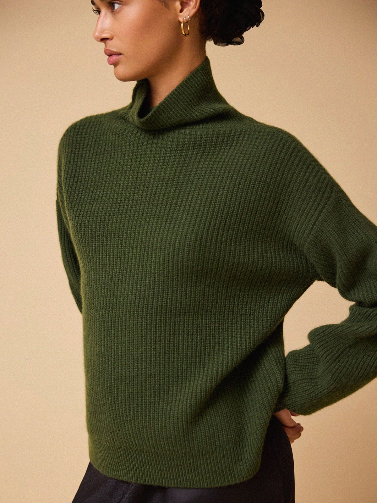 Edin is our laid-back, funnel-neck jumper. She has a dropped shoulder, allover rib detail stitch and relaxed fit, crafted from an ultrasoft cashmere blend.
