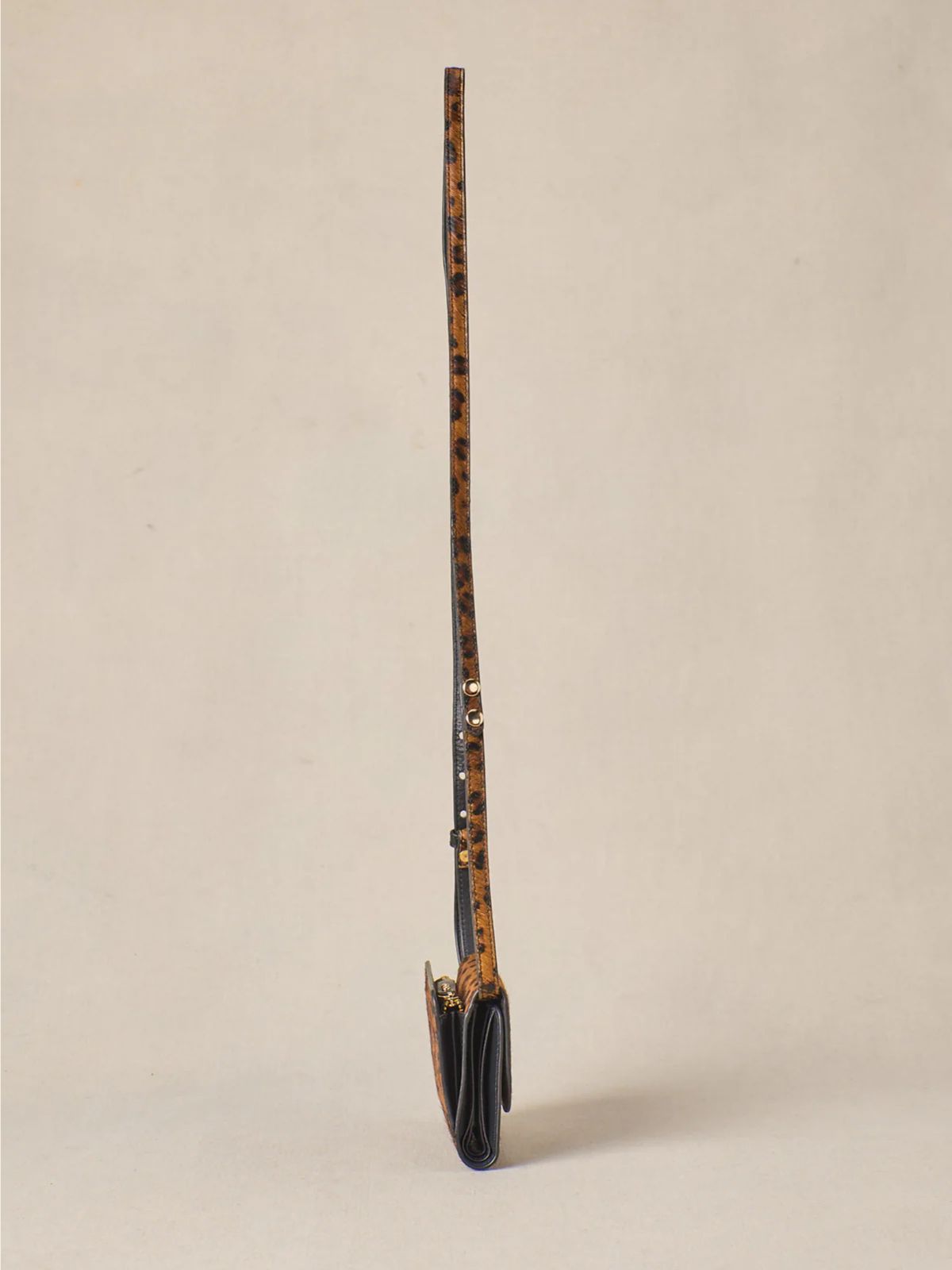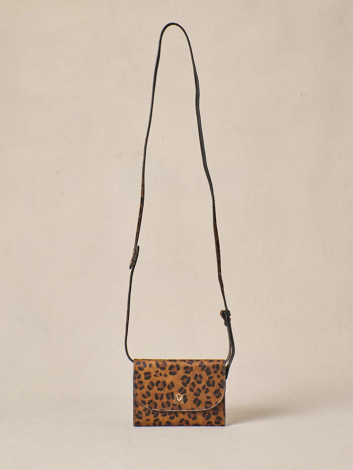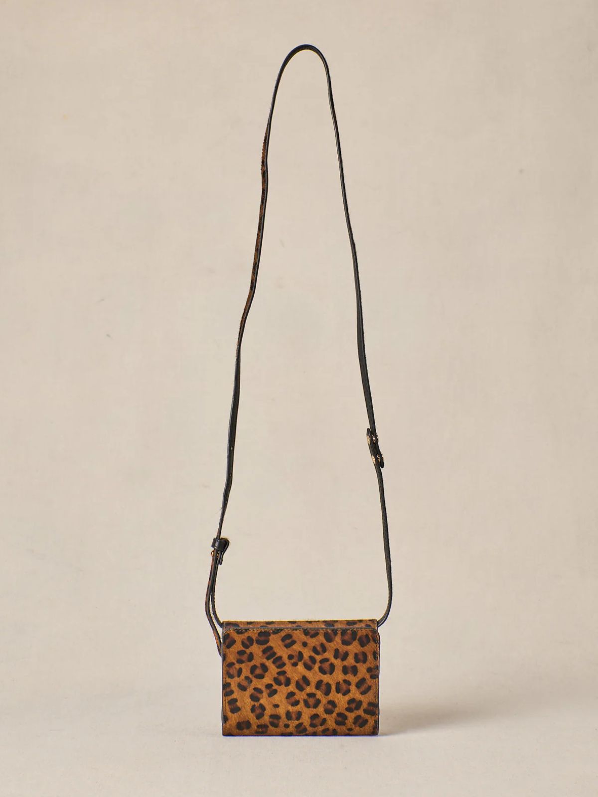 Crafted from luxurious pony leather, the Elodie Card Holder in Leopard combines refined style with practical design. It features a secure flap and press-stud closure, multiple card slots, and interior compartments for notes or papers. The detachable, adjustable shoulder strap enhances versatility, while the embossed gold logo adds a subtle yet elegant detail. Perfect for chic everyday organisation.