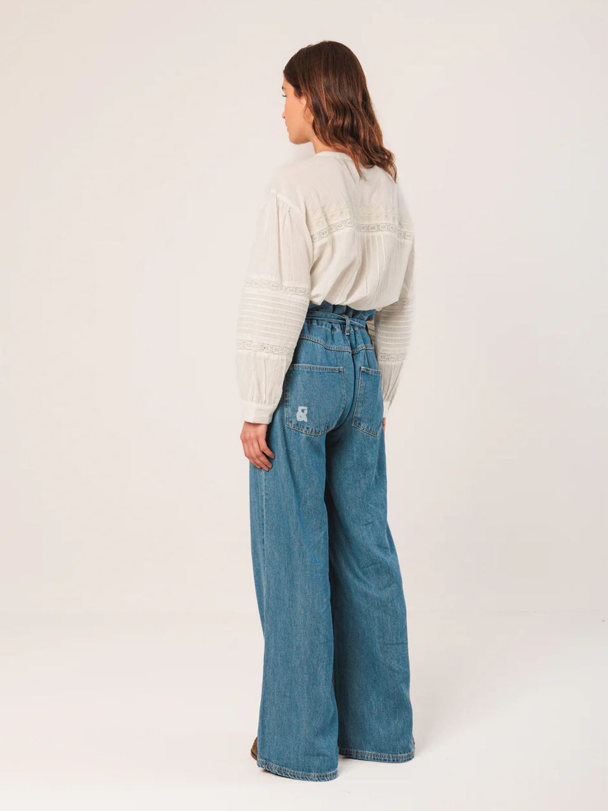 This elegant white blouse blends sophistication with timeless romance. Featuring slightly dropped shoulders and voluminous balloon sleeves, it offers a flattering regular fit. Intricate ethnic embroidery, delicate lace inserts, and soft pleats combine to create refined detailing that elevates your seasonal wardrobe effortlessly.
