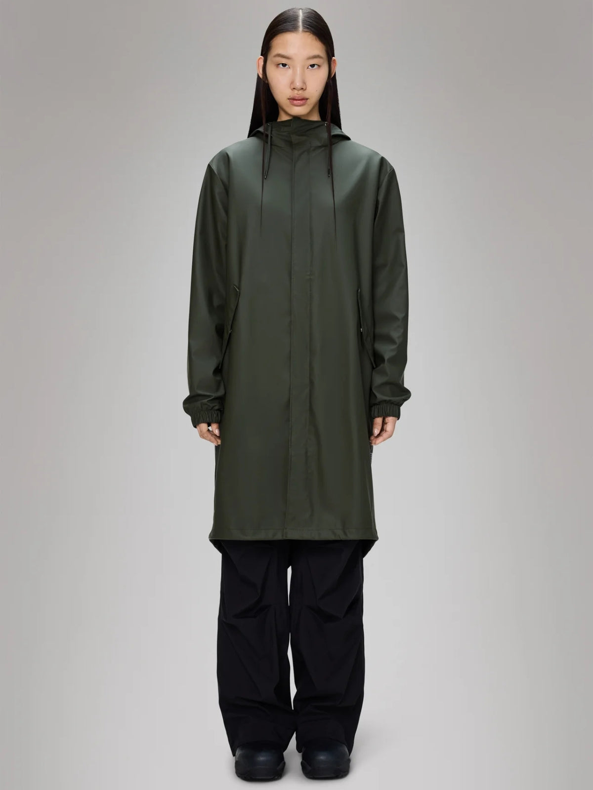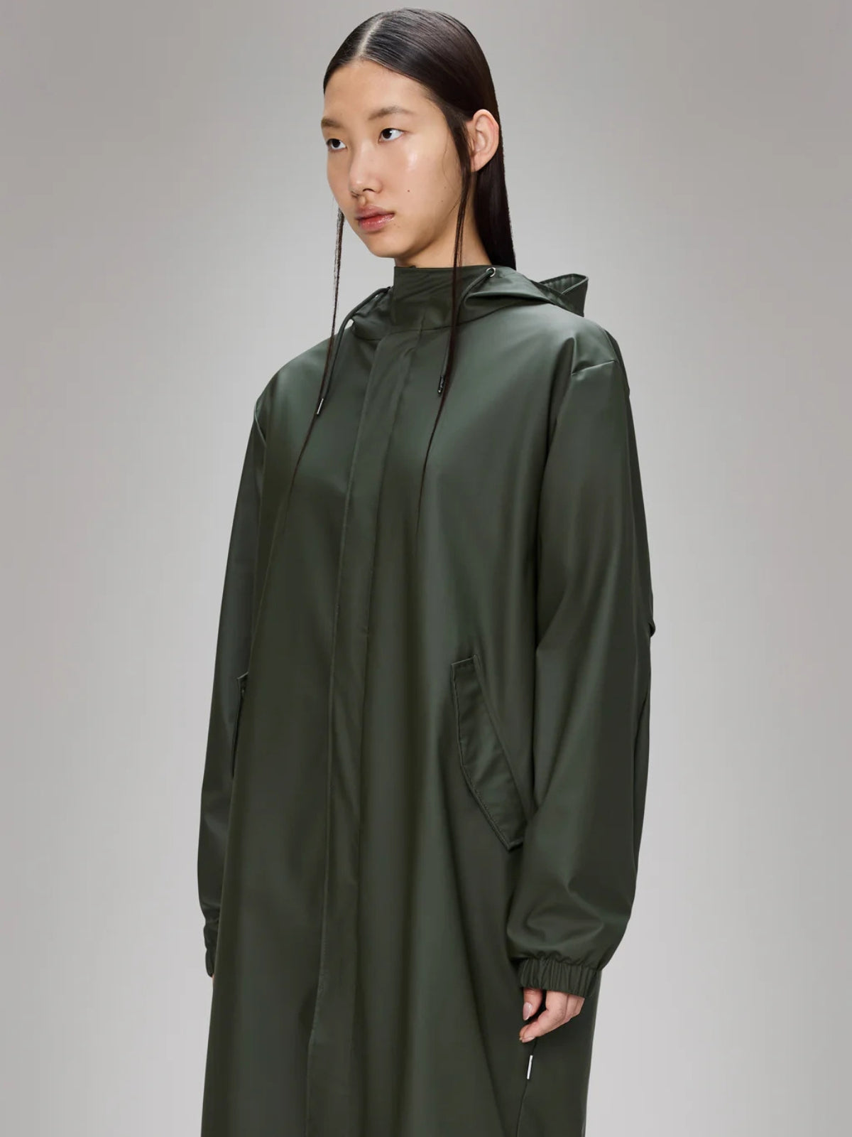 The Fishtail Parka in green offers a chic blend of practicality and style. Designed with a drawstring fishtail hem and utility-inspired pockets, this unisex raincoat ensures both function and elegance. Features a vented back yoke, hood with built-in cap, and elasticated cuffs enhance comfort and protection from the elements..