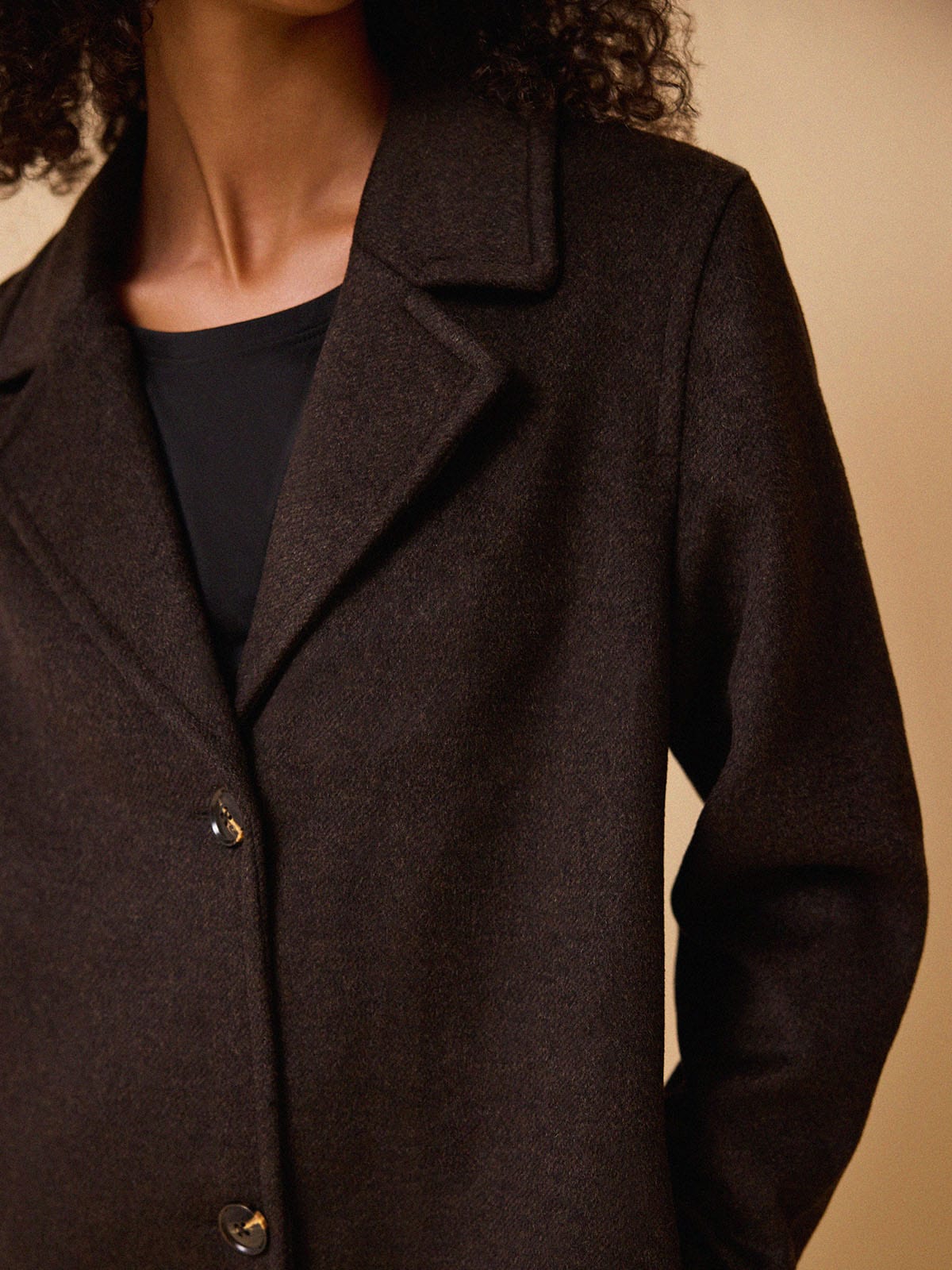 If, like us, you are desperate for a chocolate brown coat this season, Fran is here to answer all your prayers. Mid-length, with a single-breasted fastening and lightly padded shoulders in a soft wool blend, she is simple but sophisticated: the one youve been waiting for