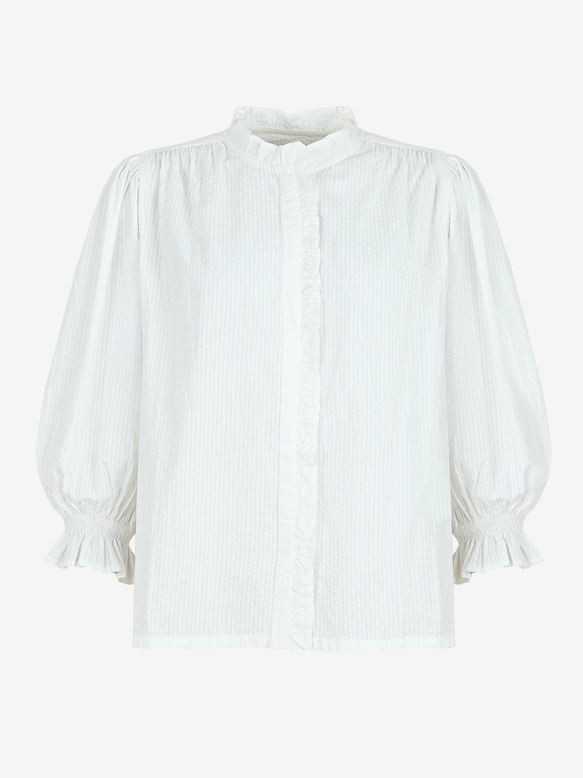 A classic white blouse is a wardrobe staple which we reach for time and time again. The Frankie in the by Iris collection is a feminine take on a classic white shirt. Crafted in fresh seerscuker fabric in a bright white hue it features a sweet feminine frilled collar and front button down placket. Desined to work as a sweet collar to wear underneath knits and blazers it can work on transeasonal days tucked into denim jeans or smart pants for work - the styling opportunites the Frankie will lend your wardrobe are infinite.