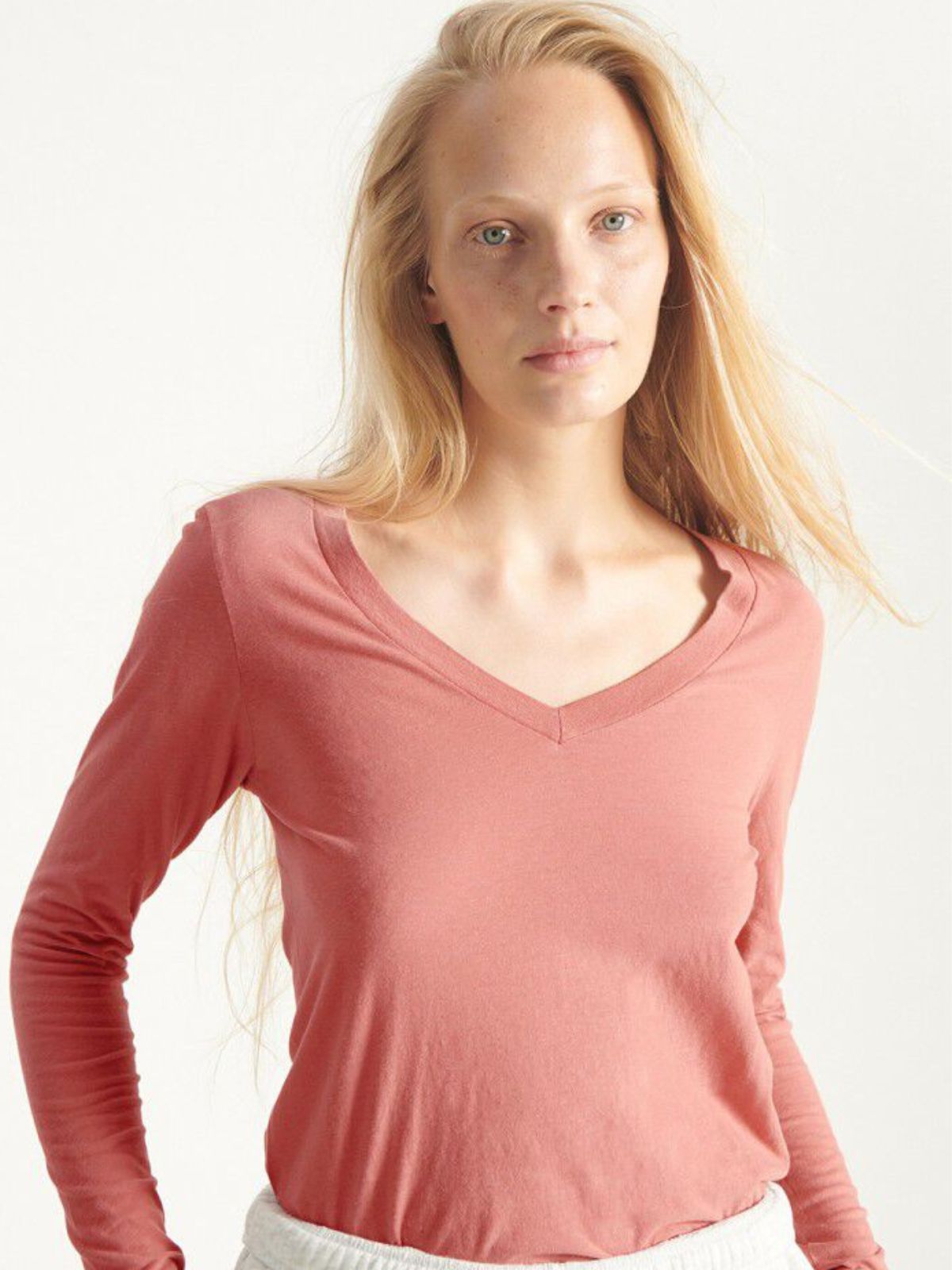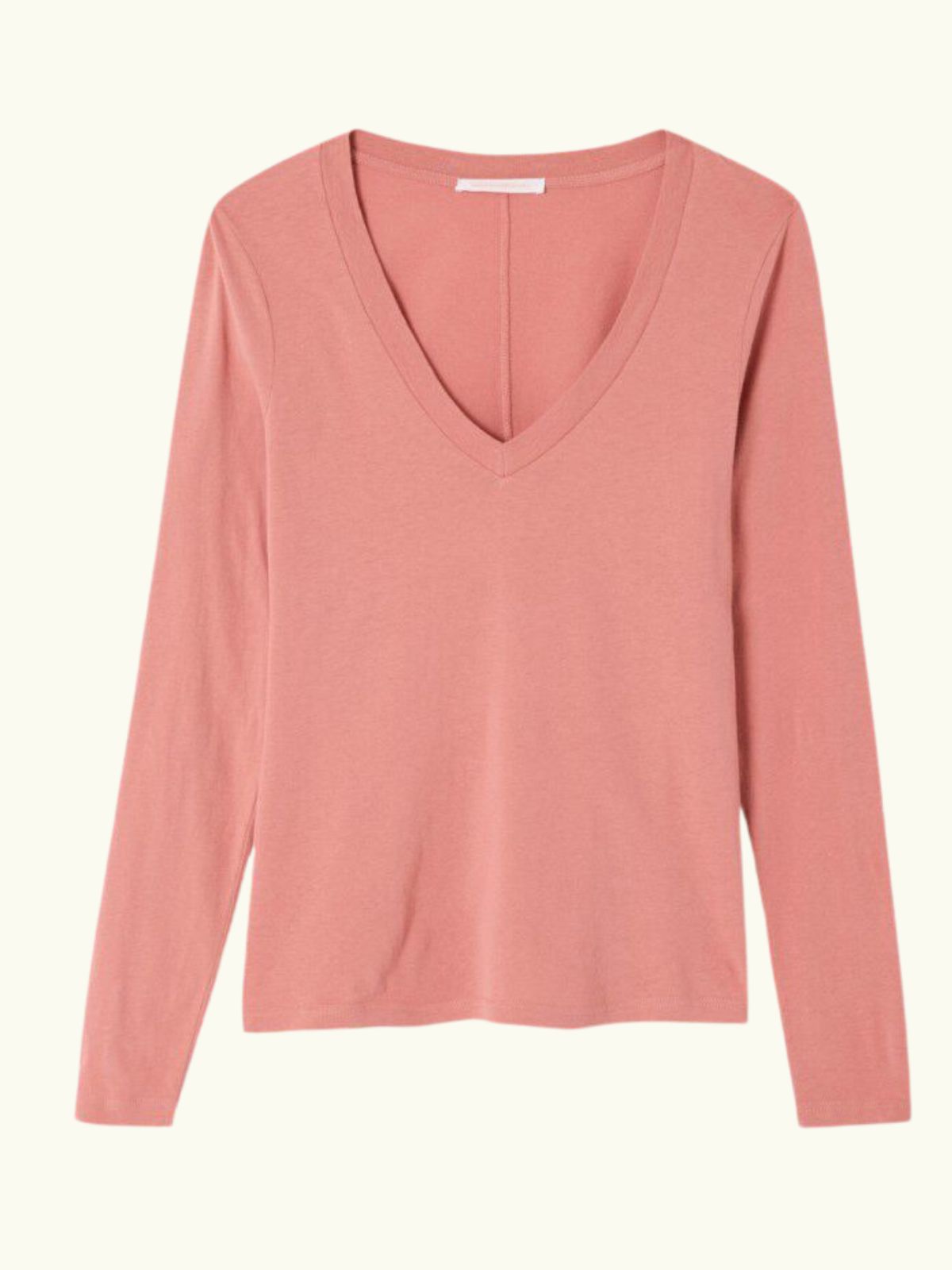 Elevate your weekend wardrobe with the Gamipy V-Neck T-Shirt in a delicate blush pink. Crafted from 100% premium cotton, this long-sleeve tee features a flattering V-neckline and a soft, breathable fabric that drapes effortlessly. An ideal piece for layering or wearing on its own with chic simplicity..