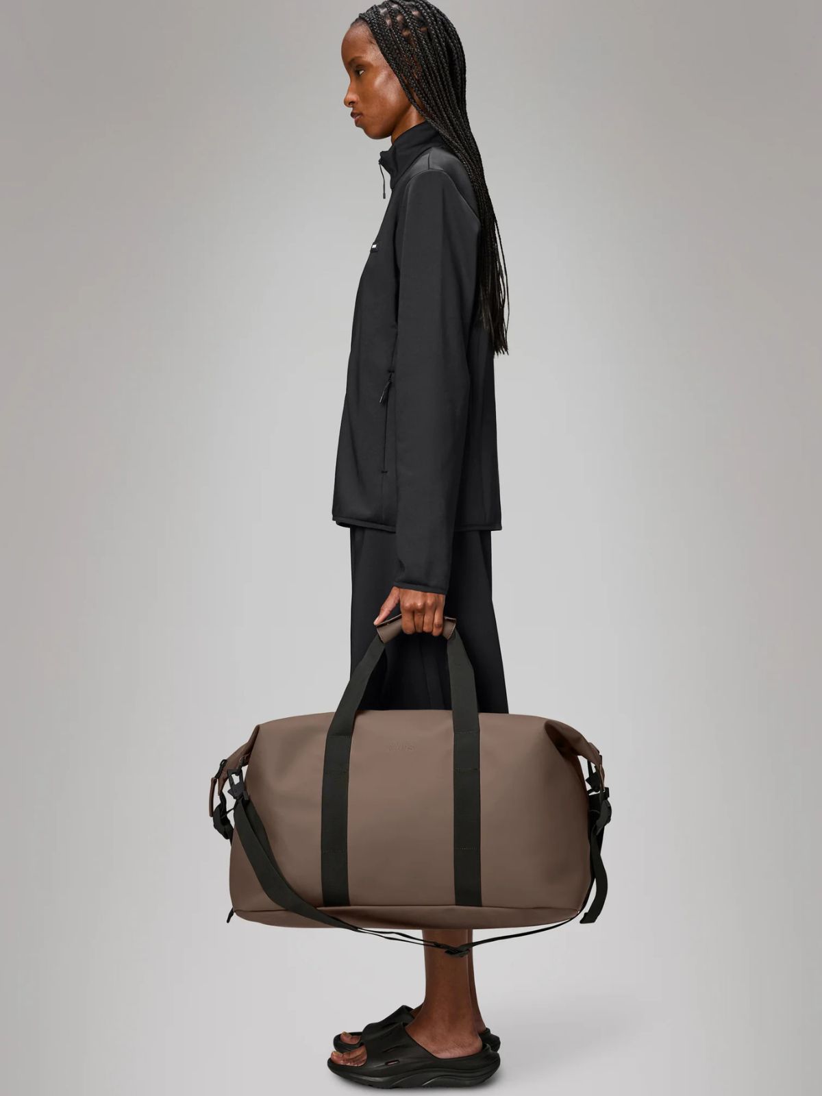 The Hilo Weekend Bag in chocolate brown elevates the overnight bag to a sophisticated travel essential. Made from Rains’ waterproof fabric, it ensures durable protection for your belongings. The spacious main compartment, accessible via a full-length coated zip, accommodates all your essentials. This refined design perfectly balances practicality and style, making it ideal for weekend escapes or professional trips.