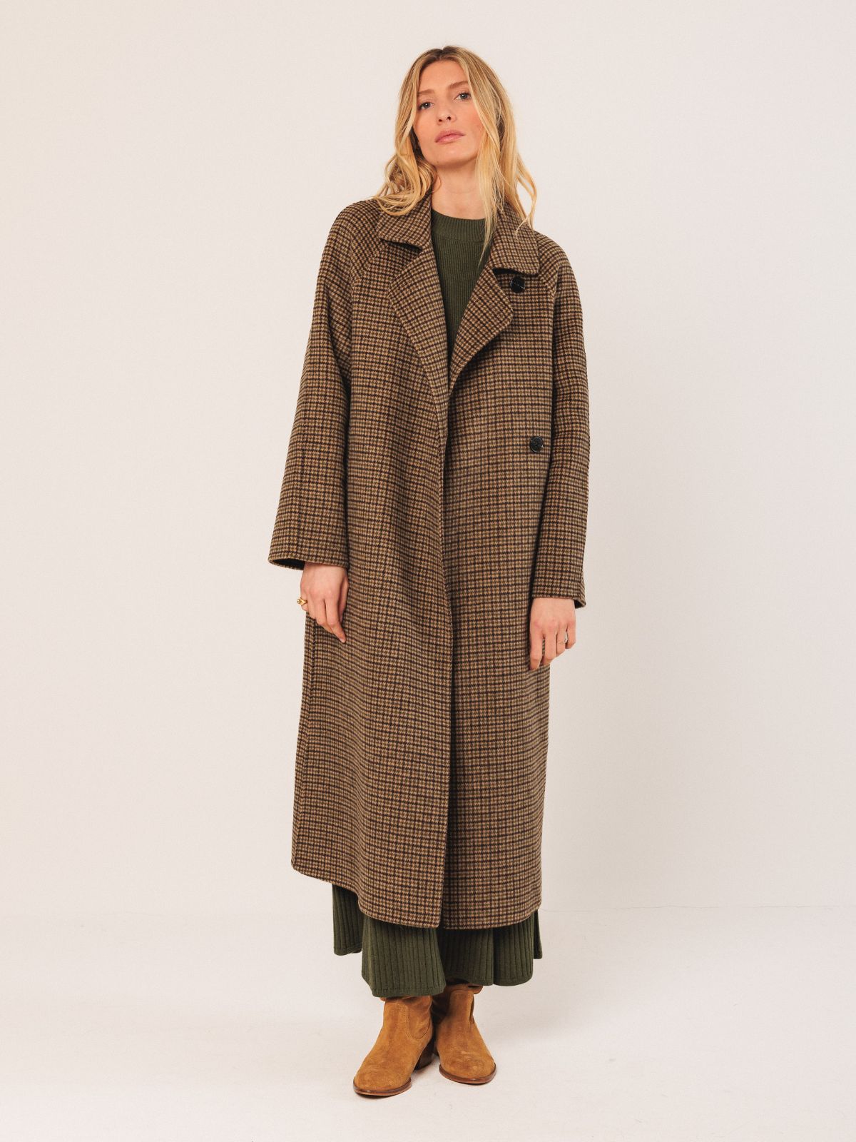 This maxi-length tweed coat combines classic elegance with a masculine tailored silhouette, crafted from high-quality fabric for warmth and structure. Perfectly suited for cooler days, it adds timeless sophistication to your wardrobe, effortlessly enhancing both formal and casual outfits with subtle refinement.