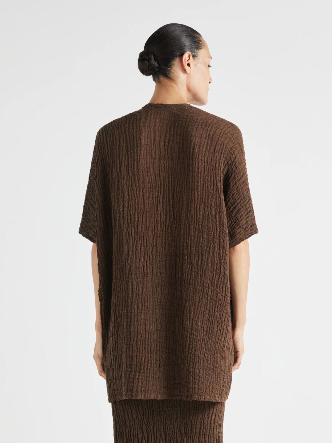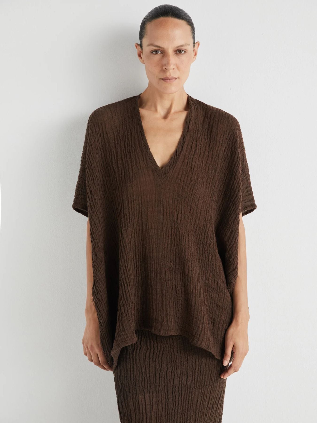 Indo Crinkle V- Neck Top - Brown