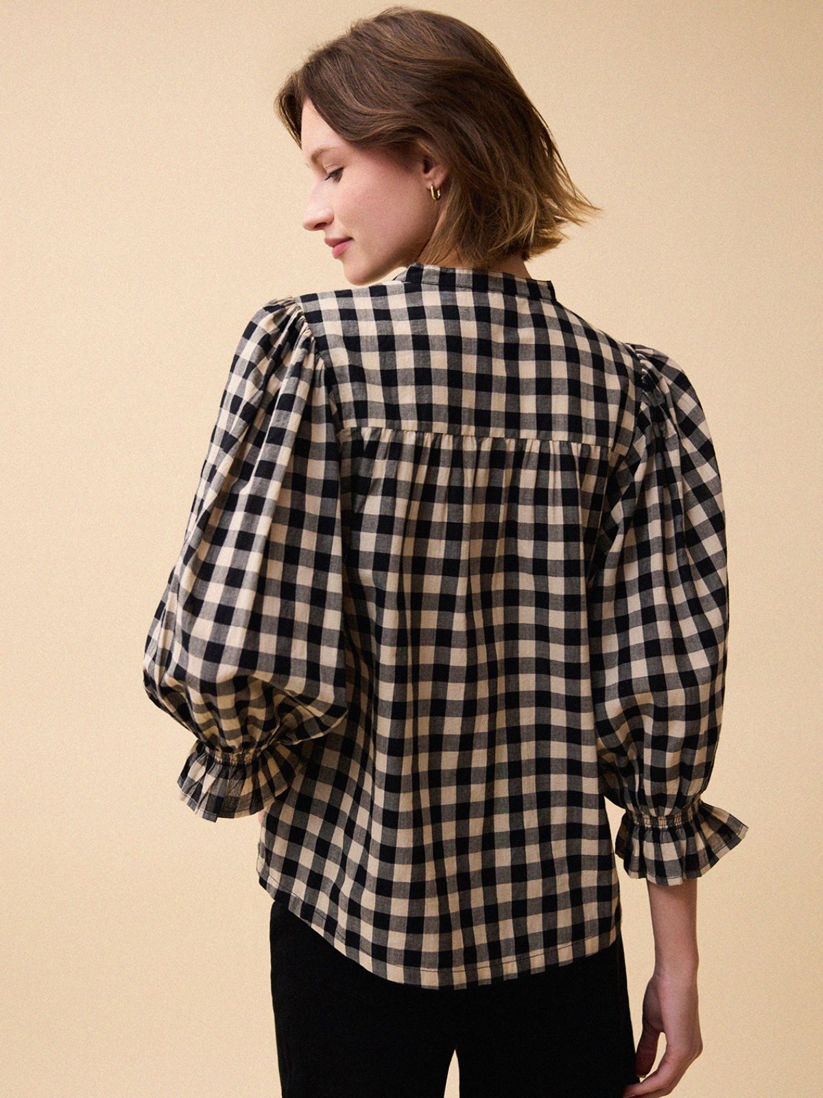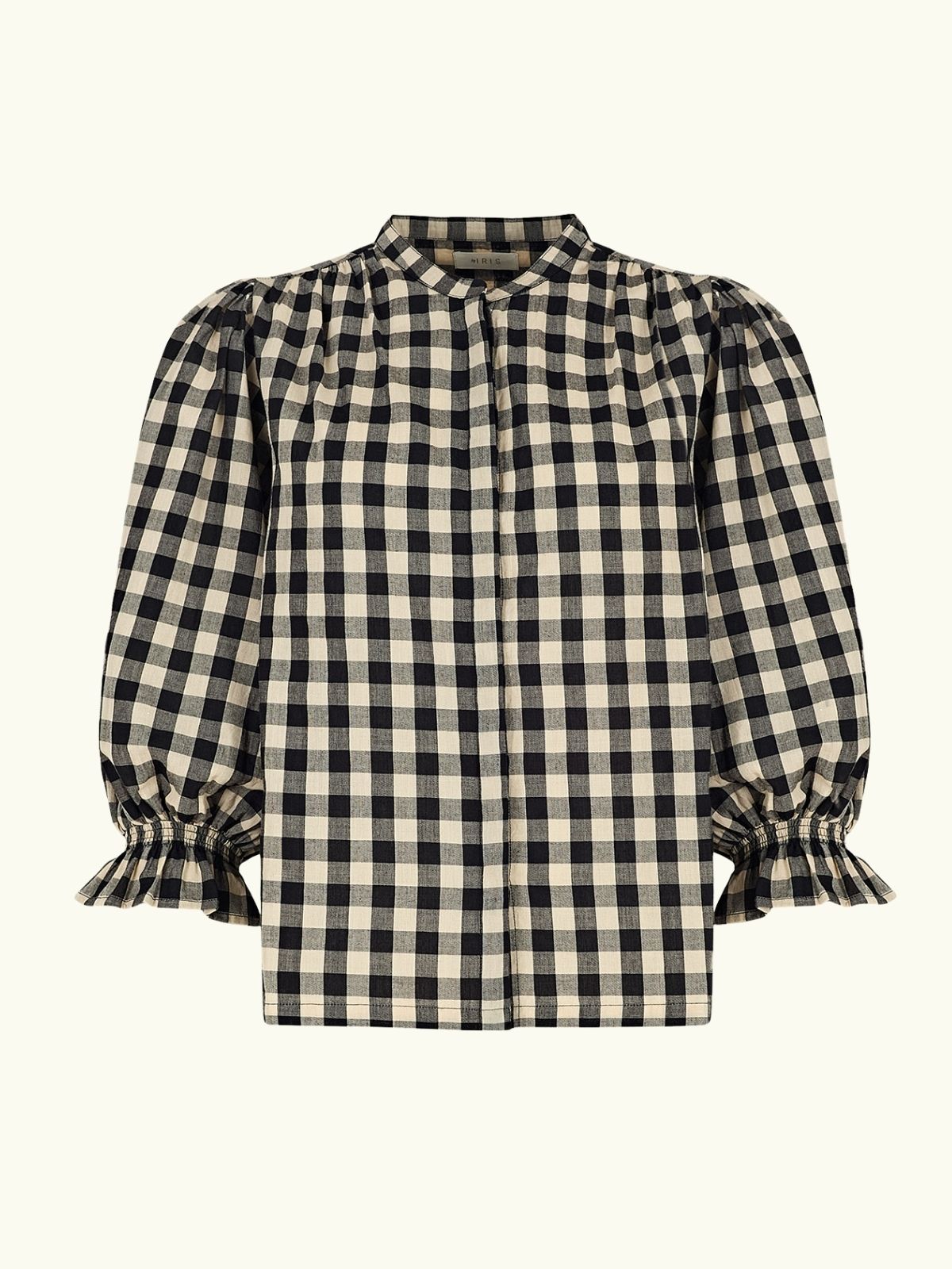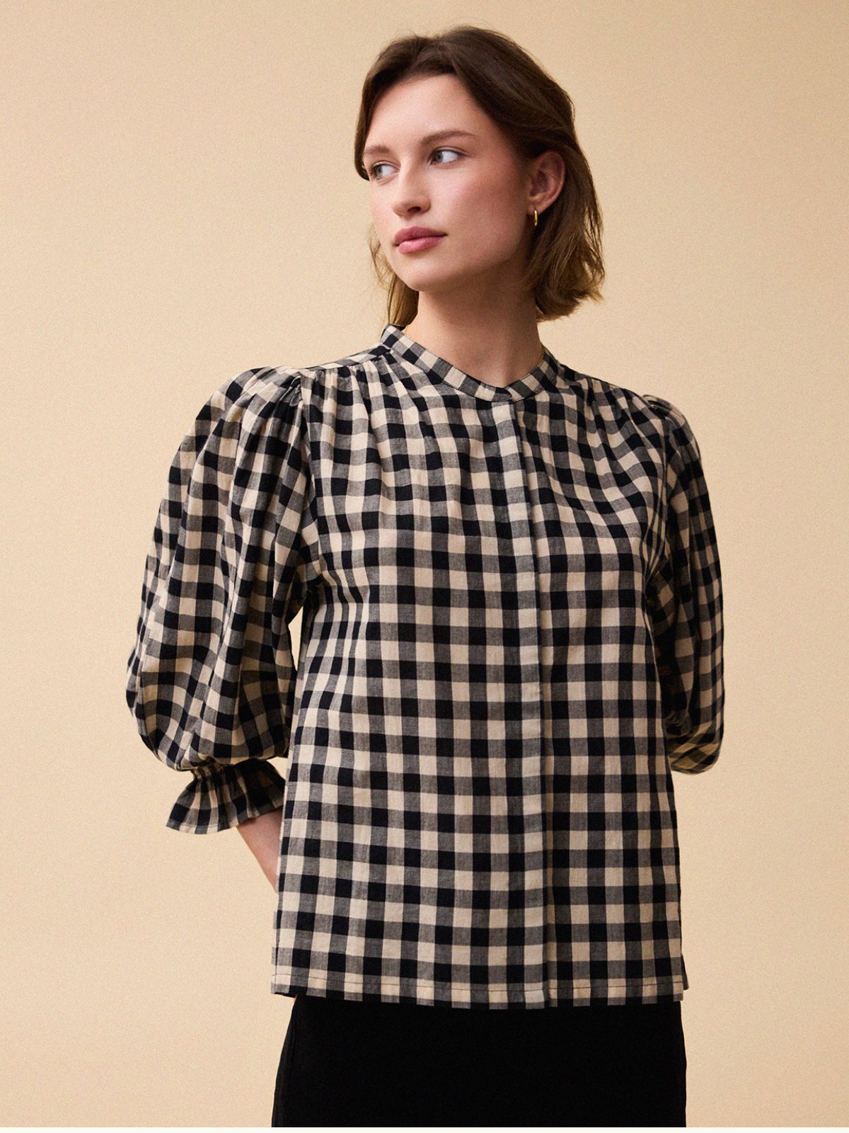 Our best-selling by Iris Jamie blouse is back in a beautiful big check print, crafted in a soft cotton. Pair with faded black Agolde jeans or a soft cream pair from Sessun for an instant new season lift.