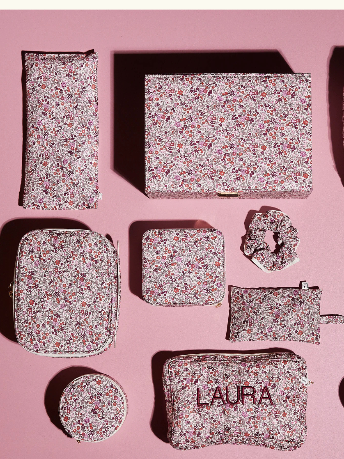 Round jewellery box with a sweet floral pink Ava Liberty print