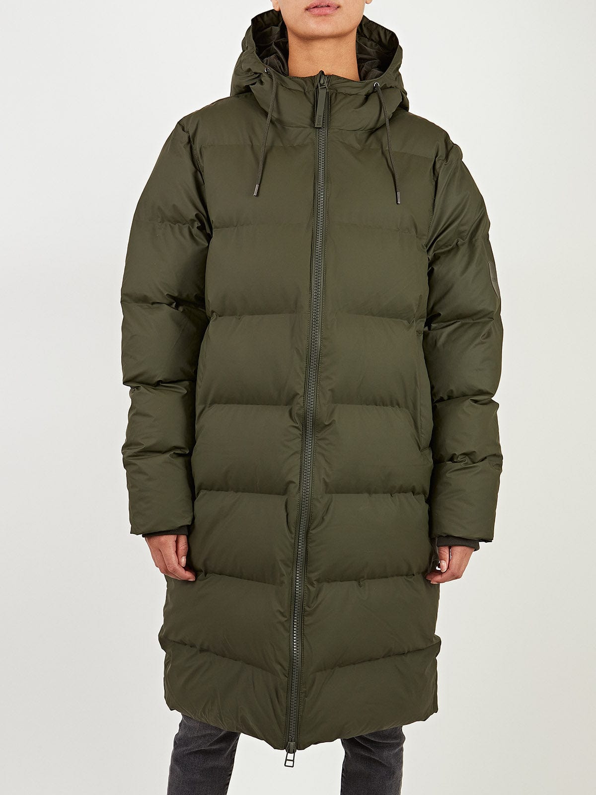 Rains are renowned for their world class all weather gear, and the Long Puffer Jacket is no exception. Cut in an insulated, breathable fabric, in a versatile khaki shade, this longline puffer style is perfect to keep you cosy in winter, whether that is out on a country walk, or to keep you warm on chilly city nights. pair with your chunkiest boots and knit for wrapped up chic style.