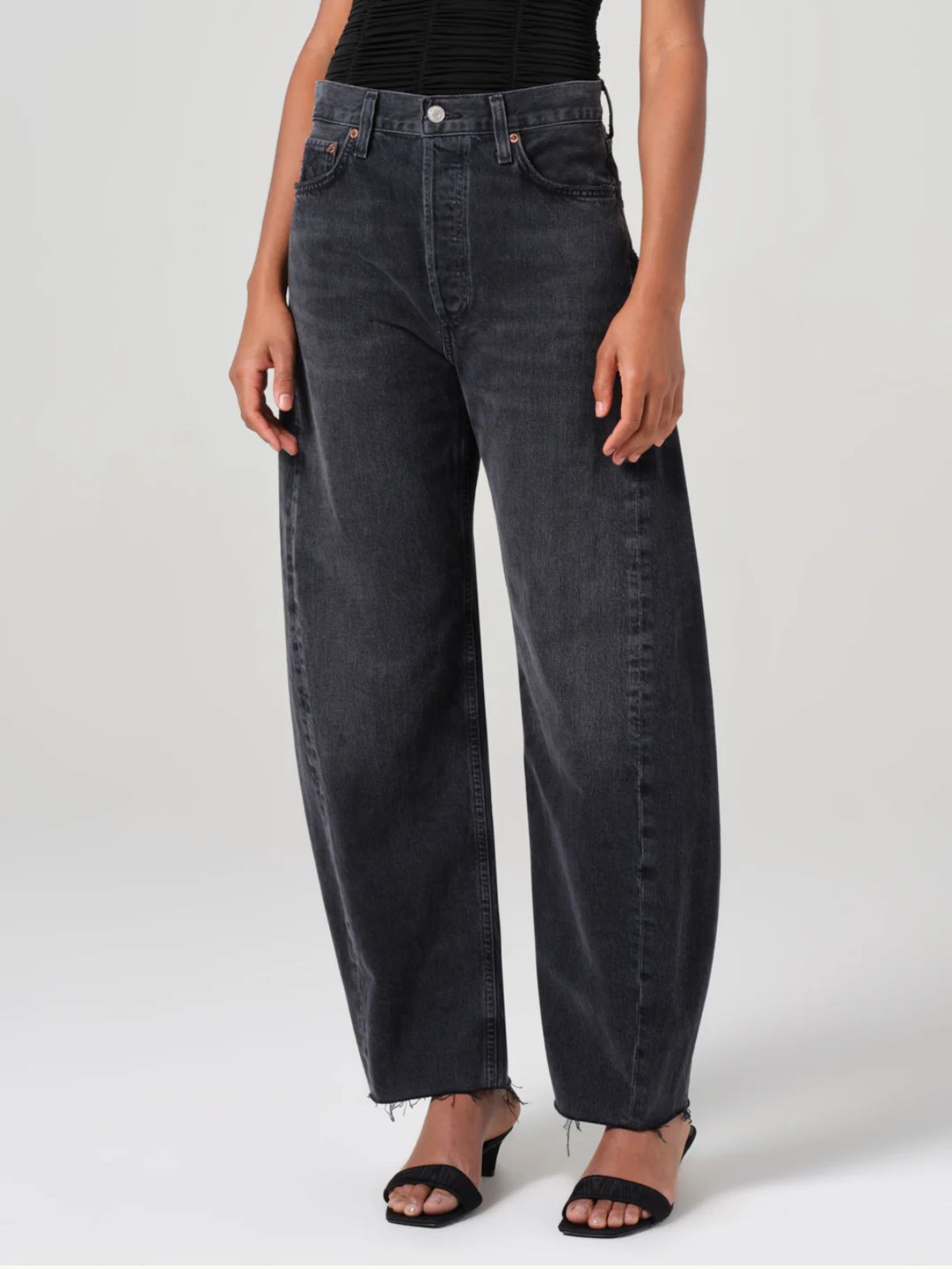 Structured to perfection. The Luna is designed with a waist-accentuating high-rise and a full-length relaxed leg. The pieced insert detailing at the outseam creates a bowed leg silhouette, ideal for taking your everyday denim to the next level. Crafted in Agolde's signature organic cotton, this style will soften with each wear while keeping its vintage appeal.