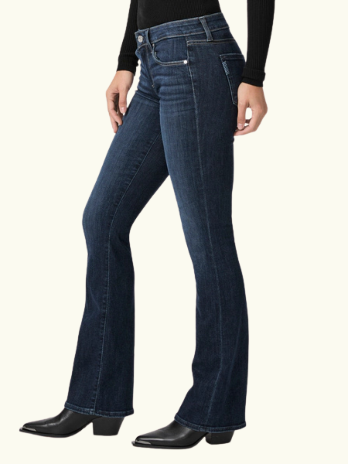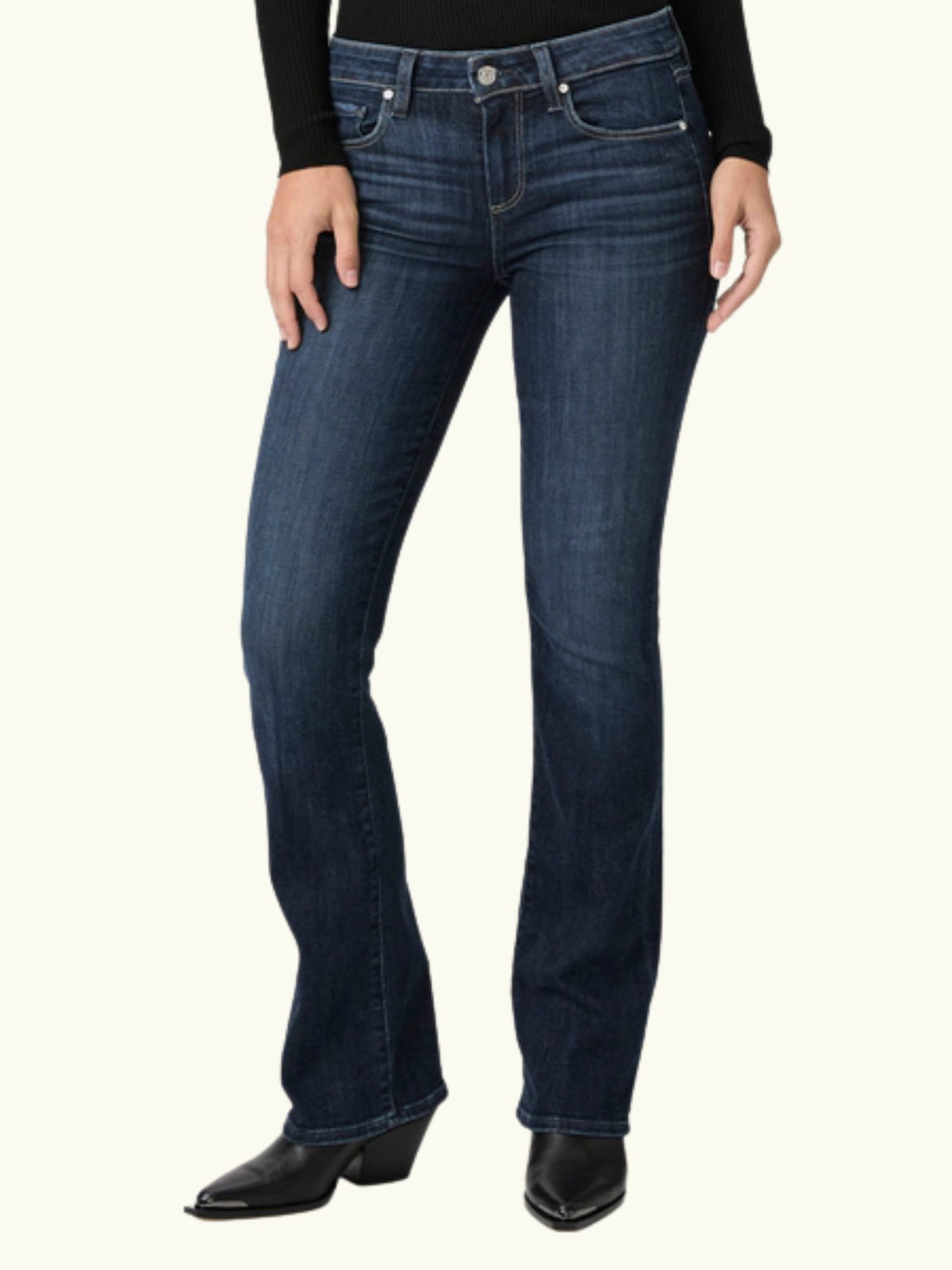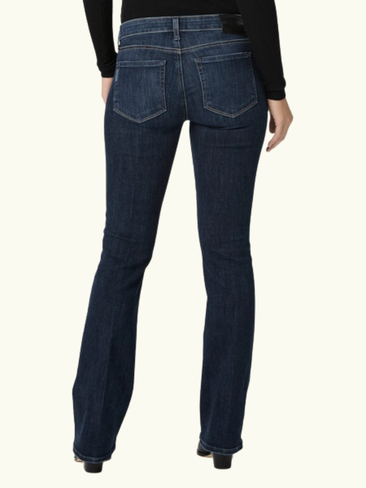 A universally flattering mid-rise style with a fitted silhouette through the hips and thighs, a slim bootcut from the knee down and a slightly shorter 32 inseam. Cut from our TRANSCEND VINTAGE denim in a timeless vintage-inspired dark wash with lived-in details and a raw hem, this pair has the look of authentic vintage denim but is incredibly comfortable with plenty of stretch and recovery.