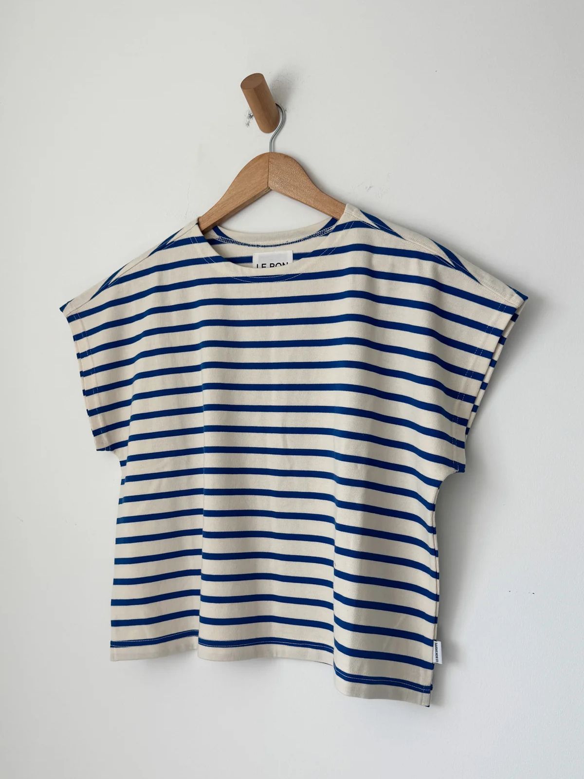 The Manon Stripe T-Shirt in Blue offers a refined take on a classic, featuring cap sleeves and a cropped fit. Crafted from heavyweight cotton, it maintains a structured yet soft feel, highlighted by elegant Parisian stripes. This timeless piece blends effortless style with lasting comfort.