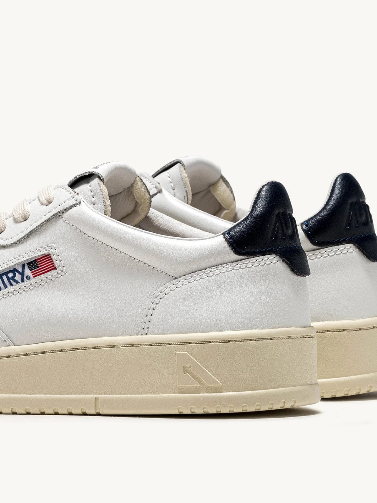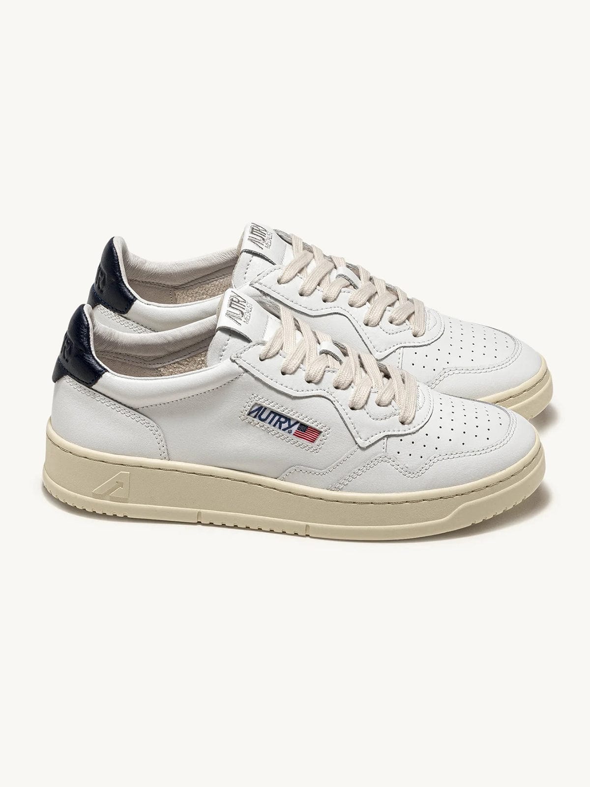 The timeless style of the Autry Medalist is inspired by the vintage design of the 80s, reinterpreted in a modern key. A distinctive design made unique by the upper in white leather and the iconic logo embossed on a dark blue color back patch in laminated leather.