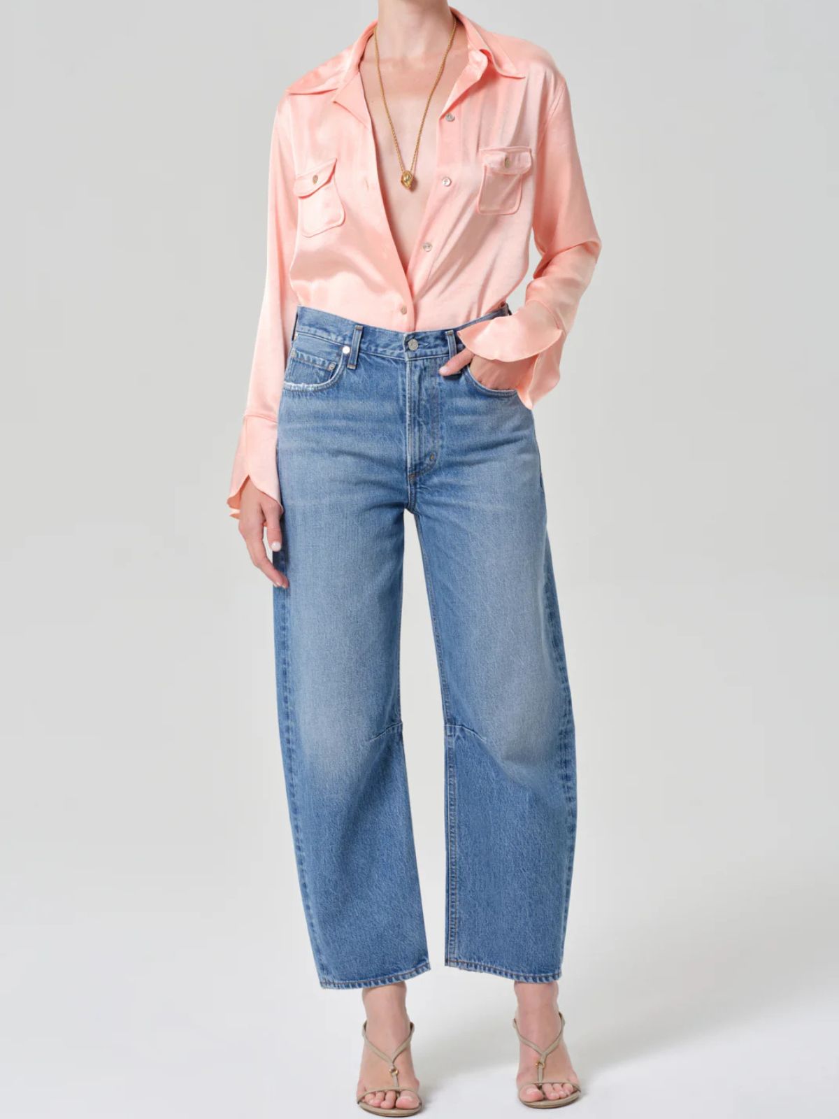 The Miro offers a refined take on the barrel silhouette, sitting high at the waist with a relaxed shape that softly tapers to the ankle. Crafted from rigid regenerative cotton denim in the Lolita wash—a medium indigo—it embodies authentic texture with a clean, modern drape. Effortless and elevated, it’s a timeless addition to the everyday wardrobe.