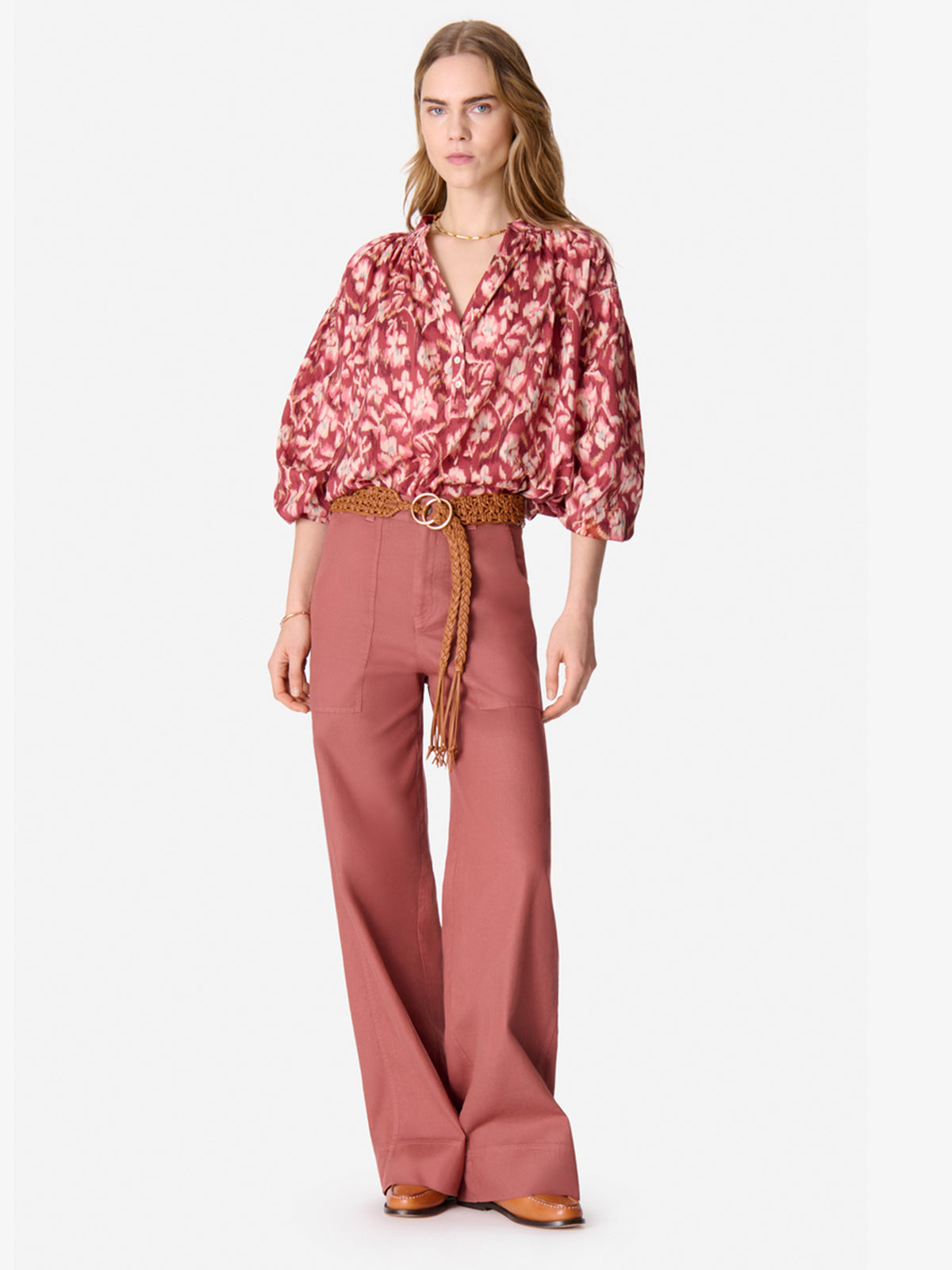 The emblematic Nipoa blouse. Its airy cut in light, subtly sheer cotton makes Nipoa the ultimate romantic blouse. Its silhouette is defined by dropped shoulders and gathered details on the sleeves. Wear with jeans or a skirt.