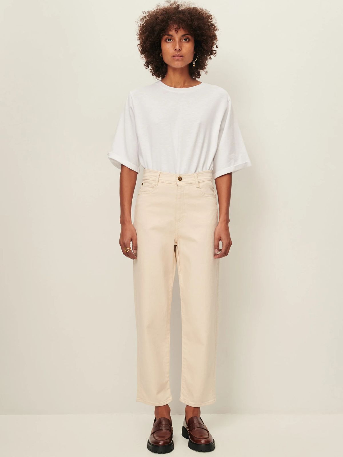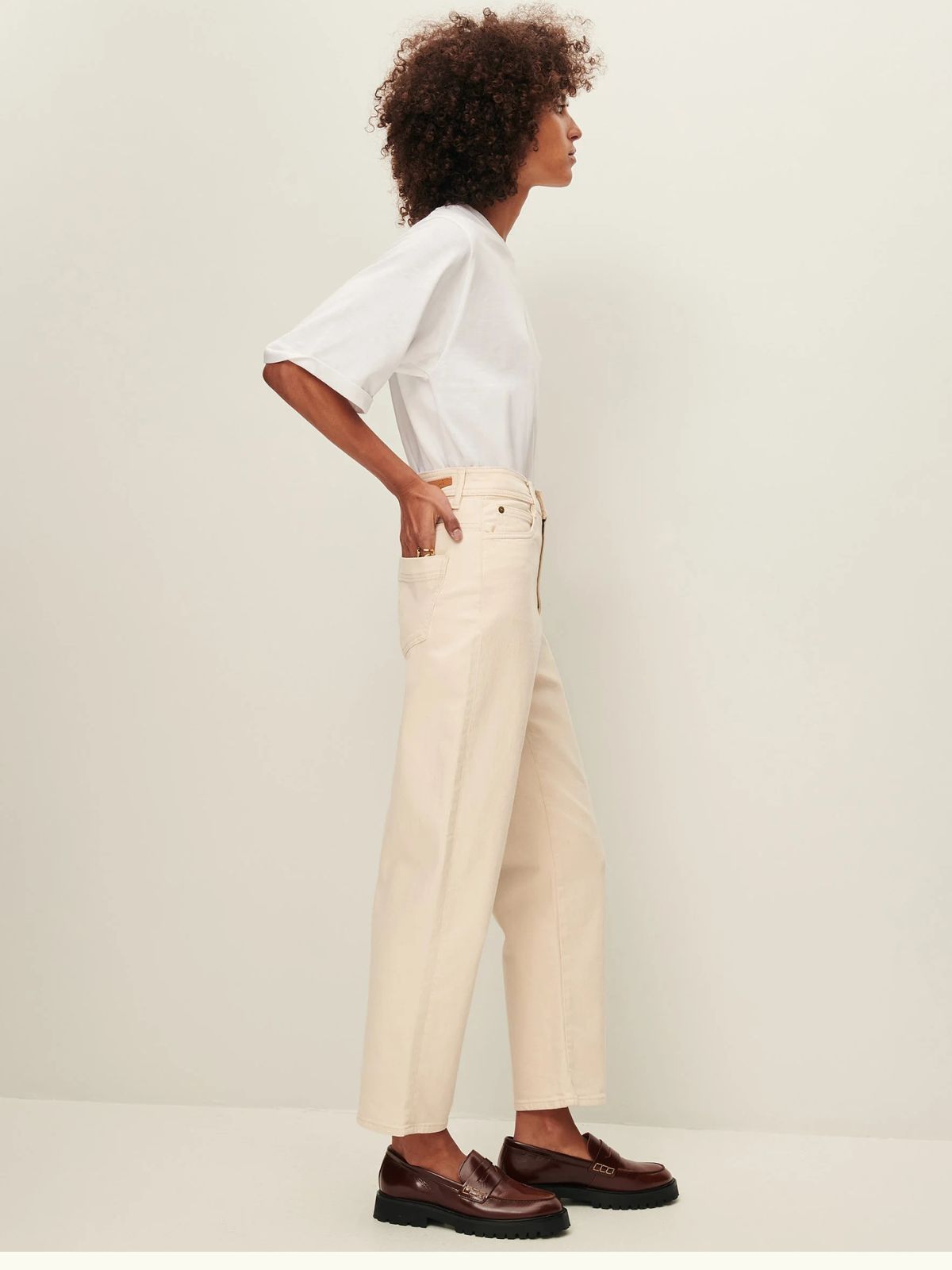 The Peter Straight Leg Jean features a refined high-waisted silhouette with a straight leg that subtly narrows towards the hem for a modern yet timeless look. Crafted from washed garment-dyed ecru denim, these jeans offer a soft texture and understated elegance, making them a versatile addition to any sophisticated wardrobe.