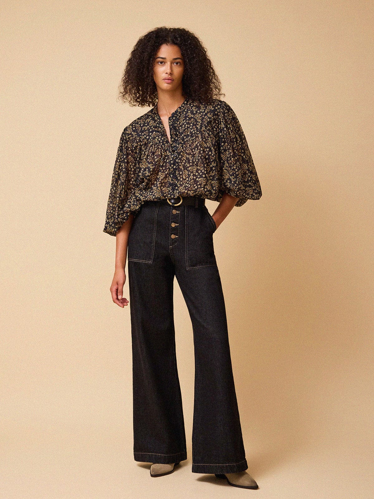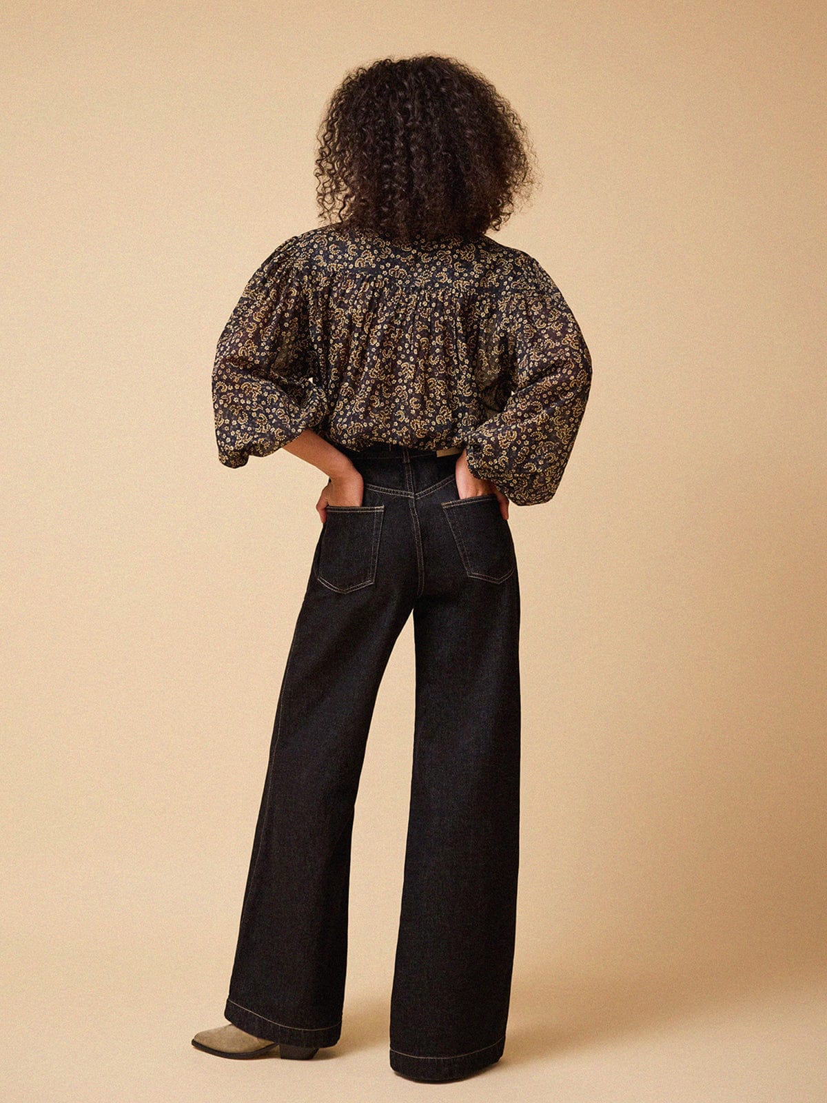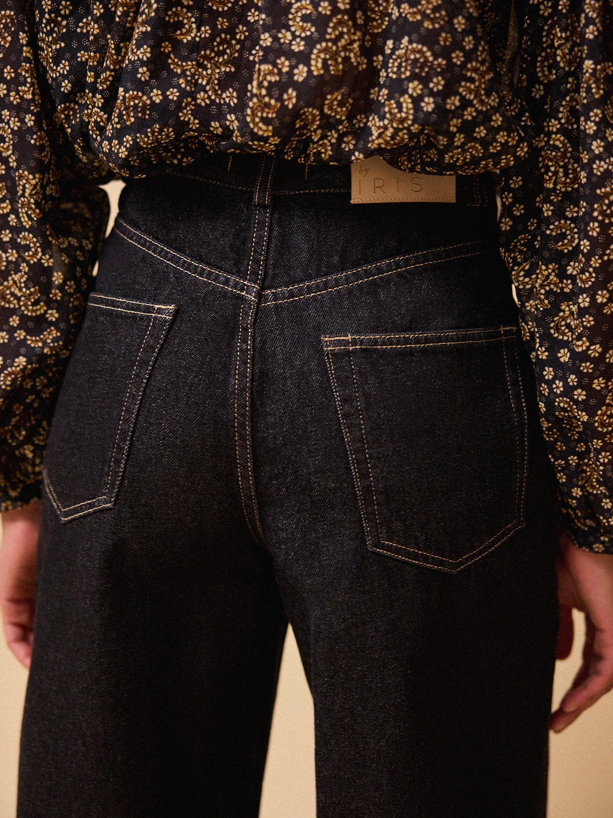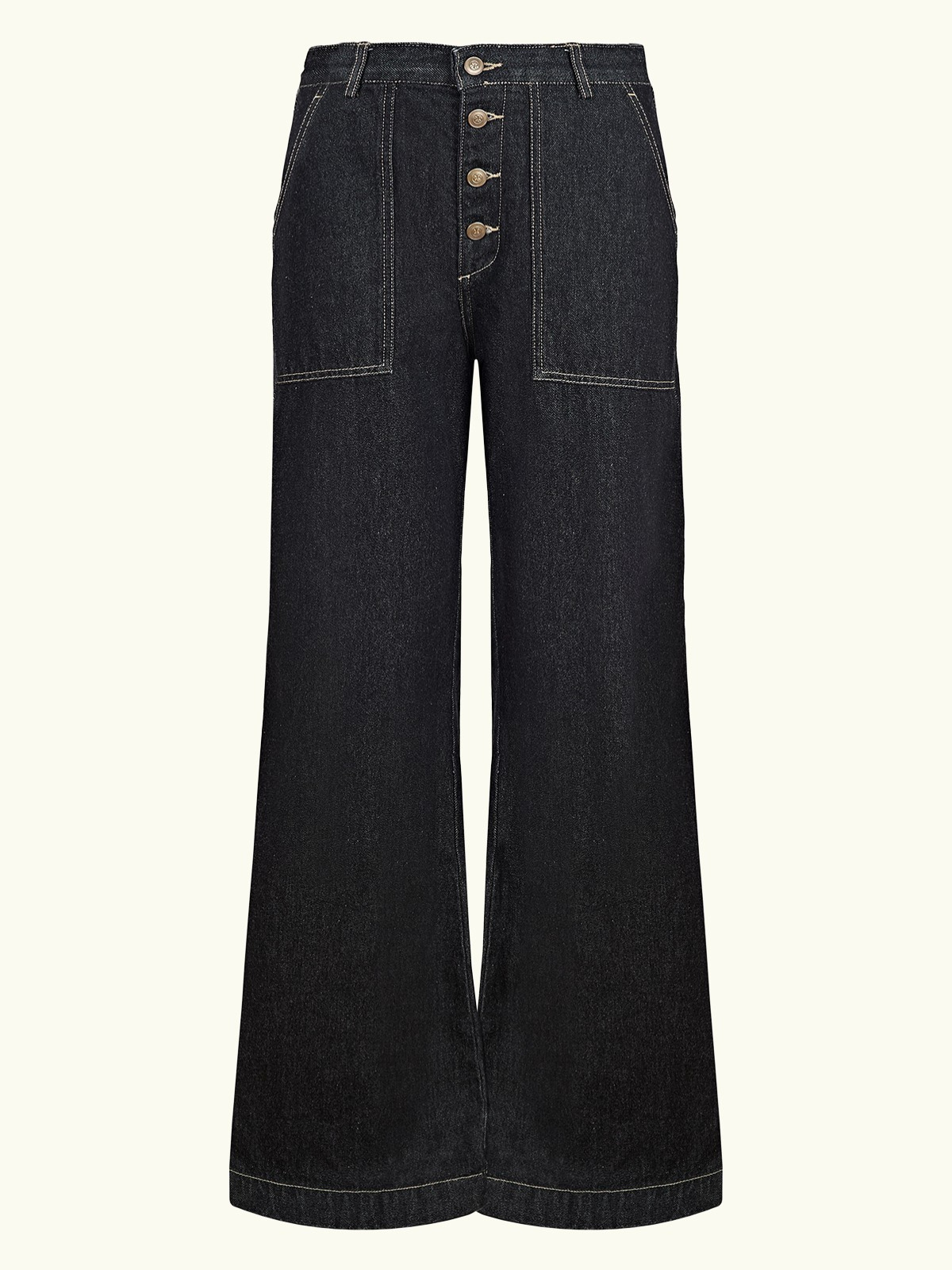 Our bestselling Reign jeans bring you a universally-flattering silhouette with a 70s twist: we re talking patch pockets, a high waist and a full-length, wide-leg cut. This season they are a cut above the rest in a vintage black denim with contrast stitching.