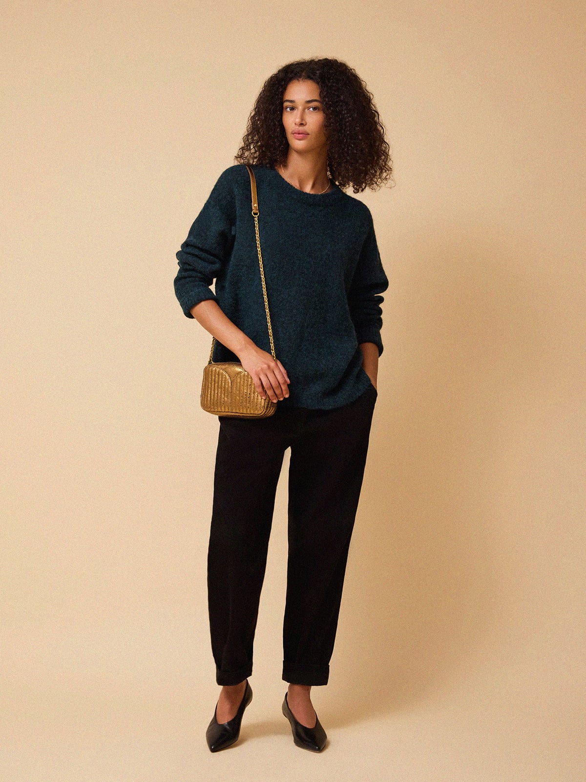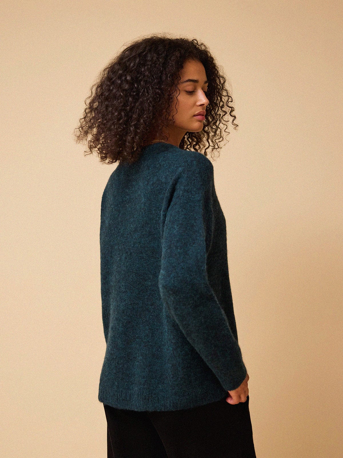 This chunky style knit features a round neck and long sleeves with contrast ribbing at the hems - a classic style that will give you wear on repeat and never date in your wardrobe. Style it with everything from skirts for work or popped over winter dresses or for off duty weekend style paired with your favourite denim jeans.