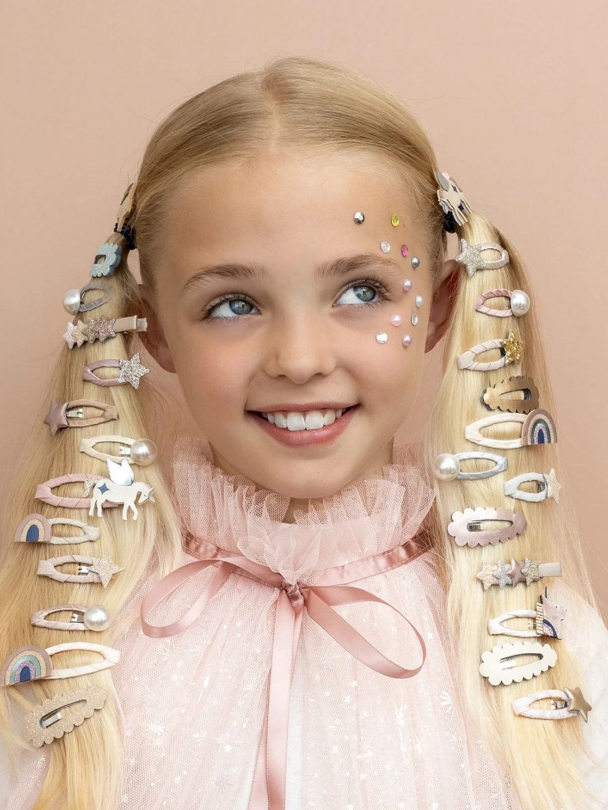 Add a touch of sparkle with these adorable scalloped mini clic clacs. Their soft, scalloped edges bring a sweet, playful charm that easily refreshes any hairstyle. Perfect for little ones who love a bit of shimmer and style!