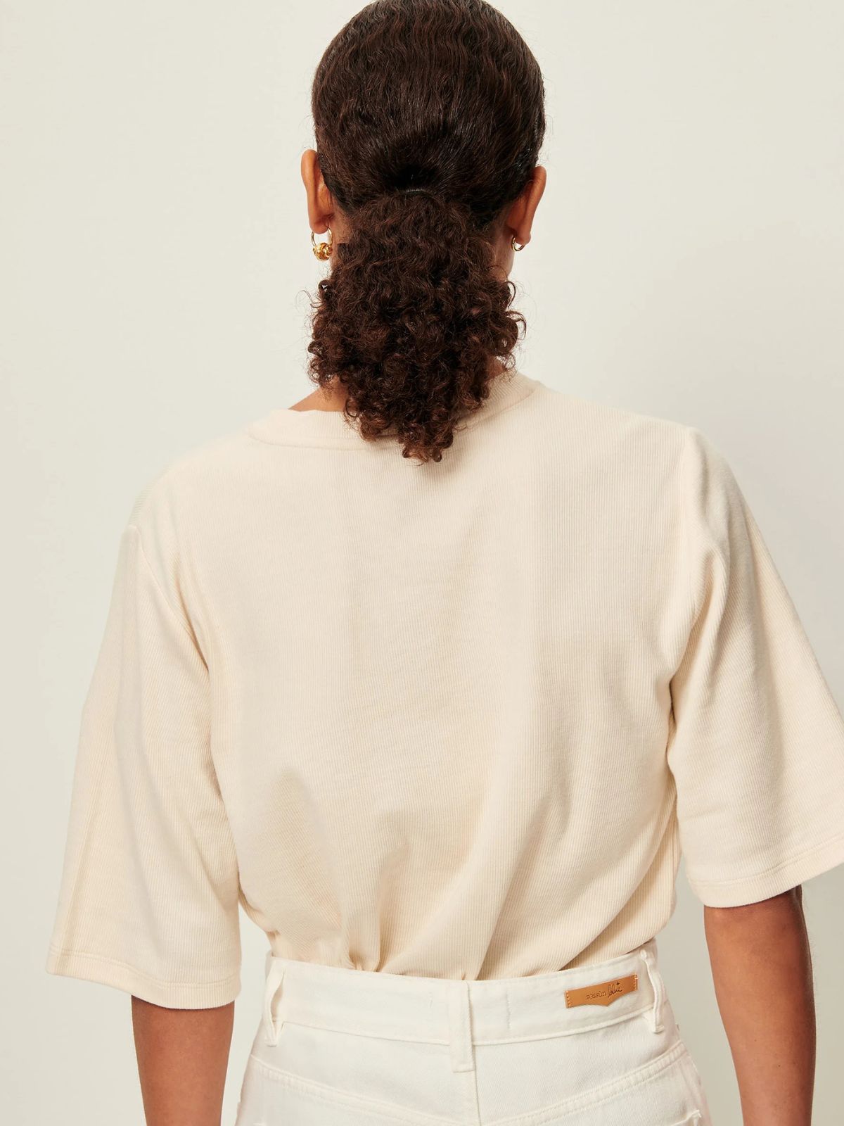 The Serge ribbed T-Shirt combines sophisticated design with sustainable comfort. Its oversized silhouette and short sleeves create a relaxed yet refined look, while the soft, fluid ribbed knit enhances breathability. Made from eco-friendly TENCEL™ Modal in a classic chic cream, this tee supports conscious fashion without compromising on style.
