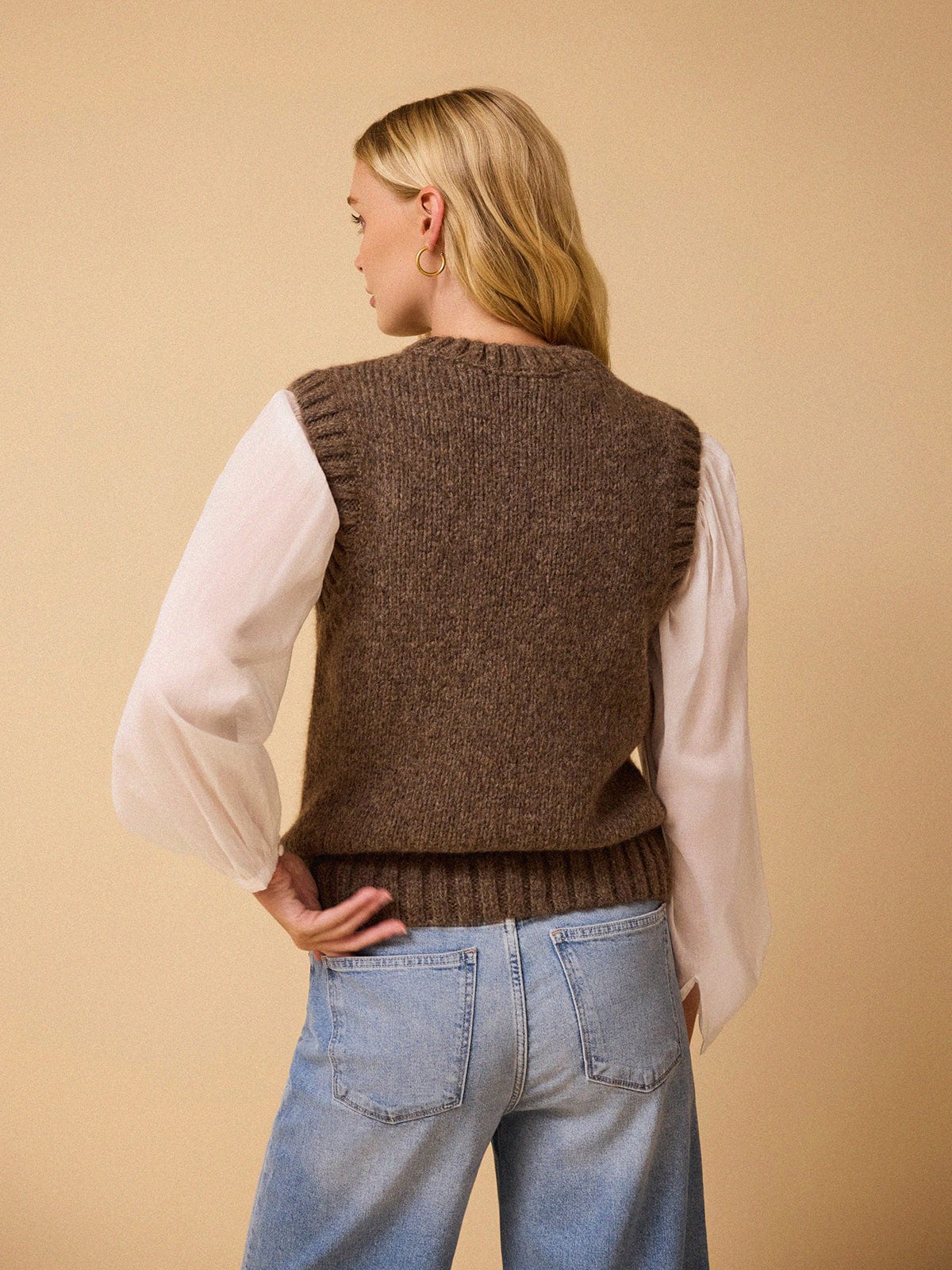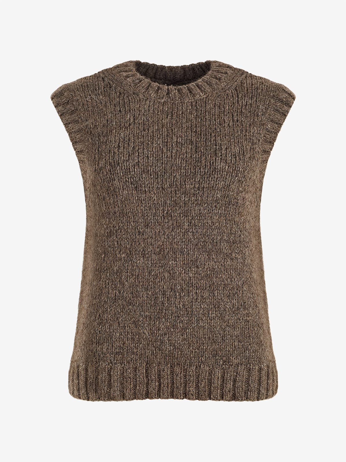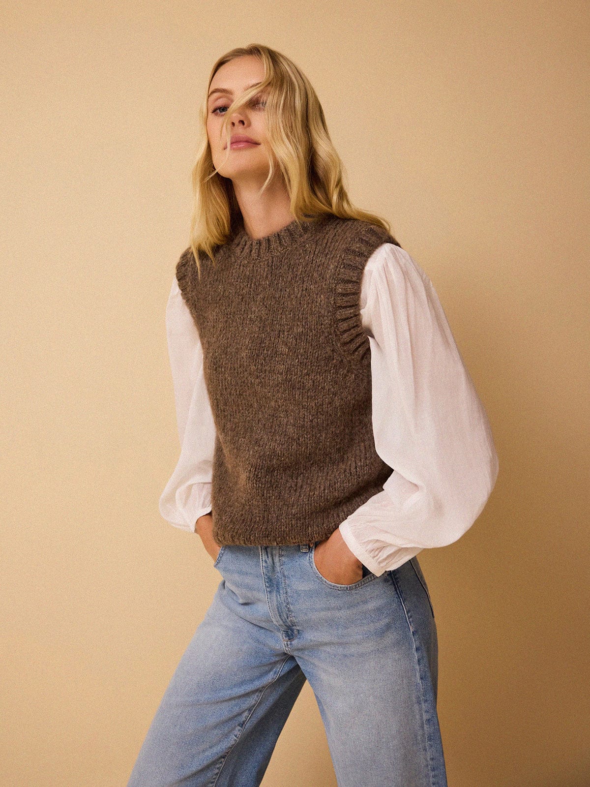 Designed for layering over your favourite blouses, Skyla is our crew neck knitted vest with a straight fit and ribbed detailing in a soft merino-alpaca blend.