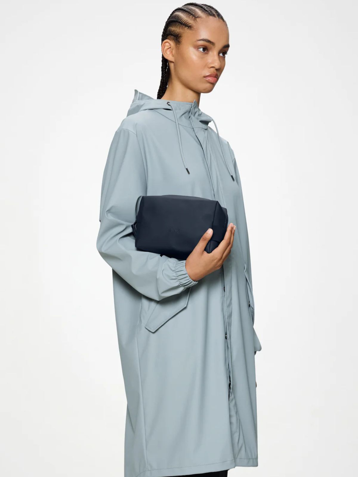 The Rains Small Wash Bag is characterized by its soft squared design that features a single compartment. The waterproof design is finished with a coated zip and webbing carry handle. The design is minimal and compact yet holds space for your essentials when traveling.