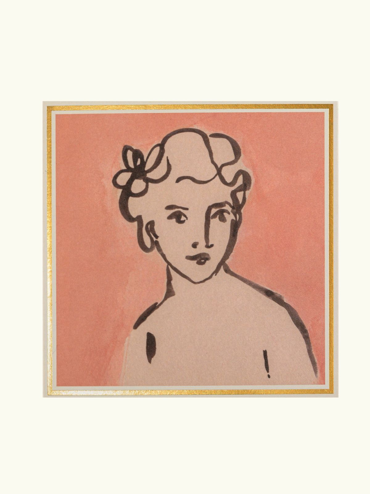 The signature square matchbox by Achivist Gallery featuring an illustration of a woman's head and neck with a flower in her hair on a blush pink background Striking in every sense – these matchboxes are filled with 125 matchsticks ready to spark a little joy. Designed to add character to coffee tables, mantelpieces, and gift drawers, each box is a blend of function and flair.