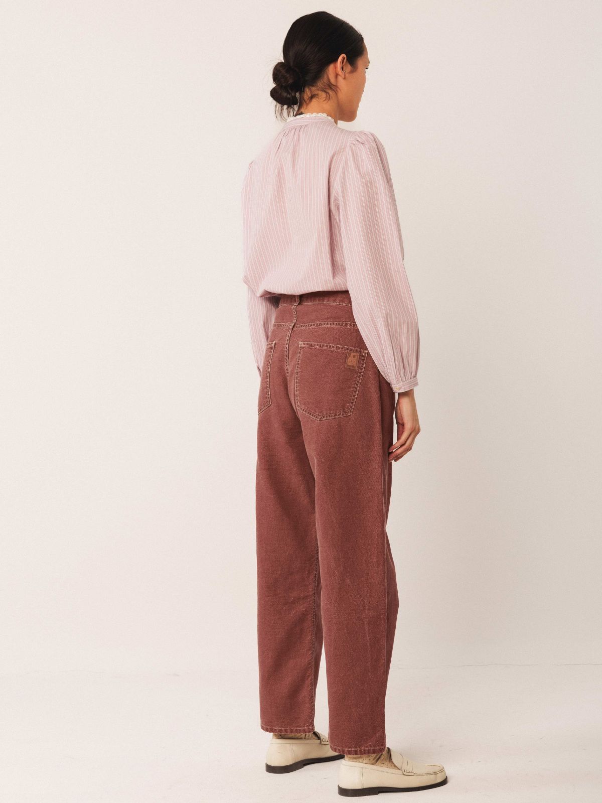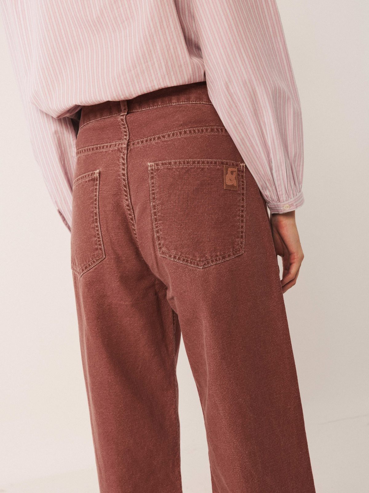 These Straight Leg Jeans in a refined washed cherry shade are crafted from washed cotton twill, offering a softly worn, lived-in appeal. Featuring a mid-rise waist and a tailored straight leg cut, they provide a flattering yet comfortable fit. Perfect for autumn styling, they pair effortlessly with the coordinating twill jacket to complete a chic laid back look. Also available in olive green.