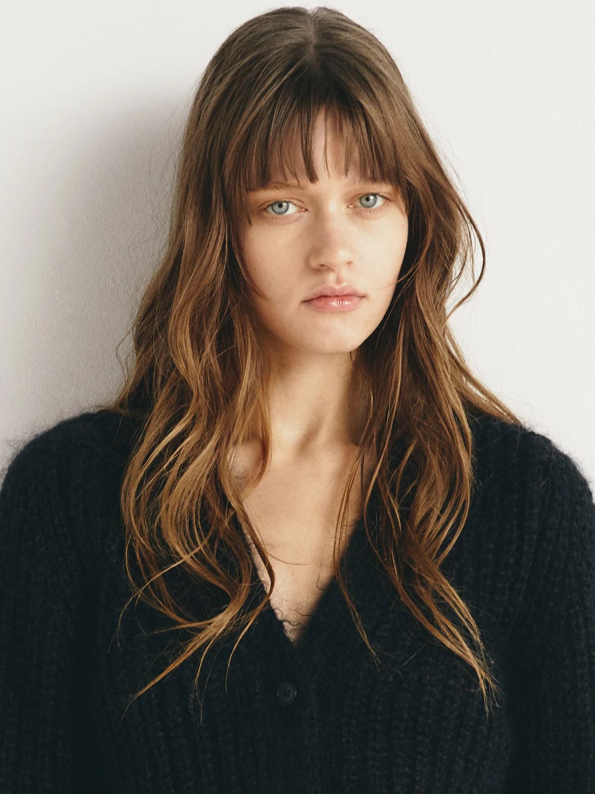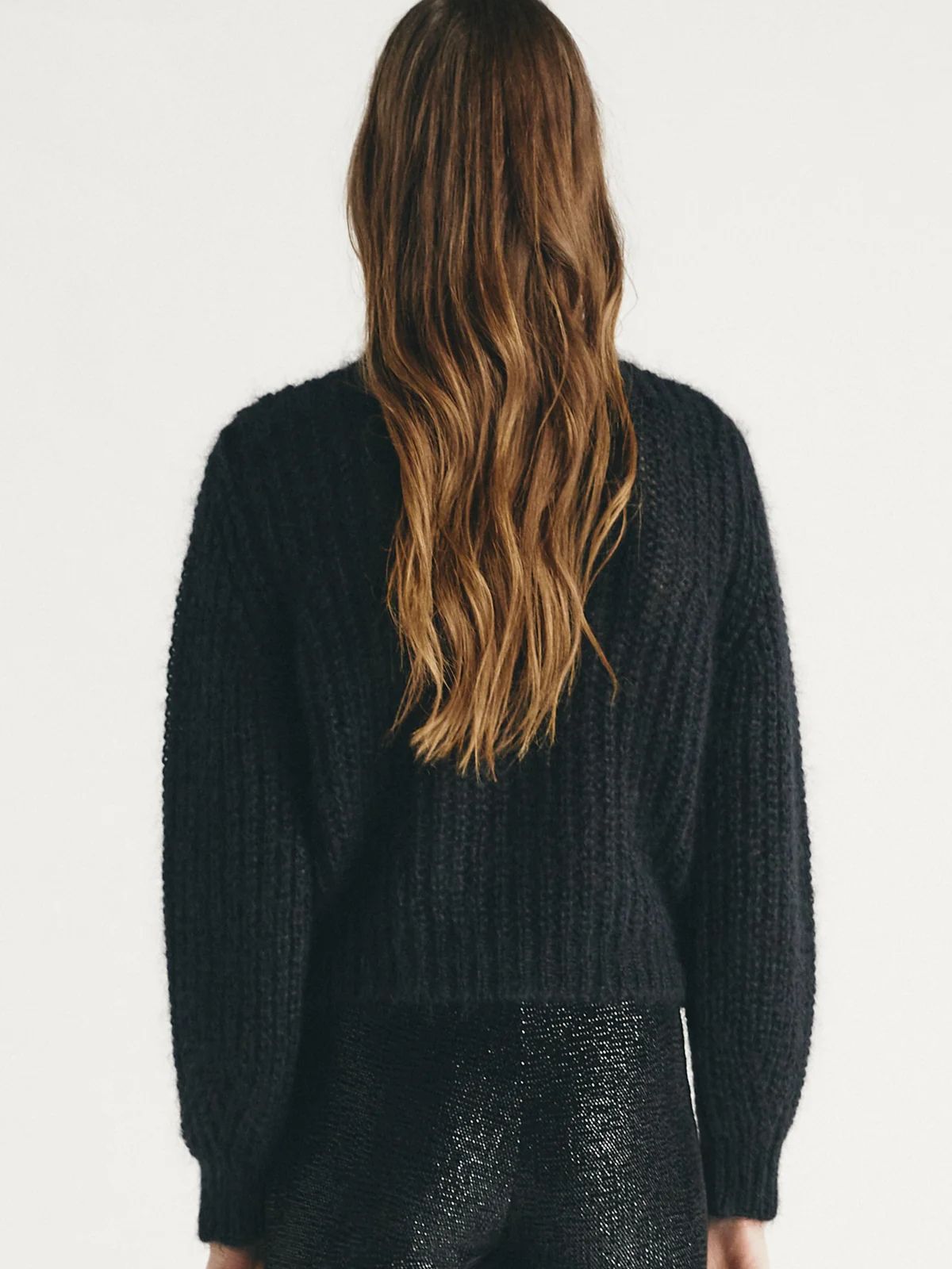 The Wicca Cardigan in black is a flawless blend of mohair that delivers both softness and warmth. Designed in a short crop style, it reflects timeless sophistication, making it an essential piece for a polished and elegant wardrobe.